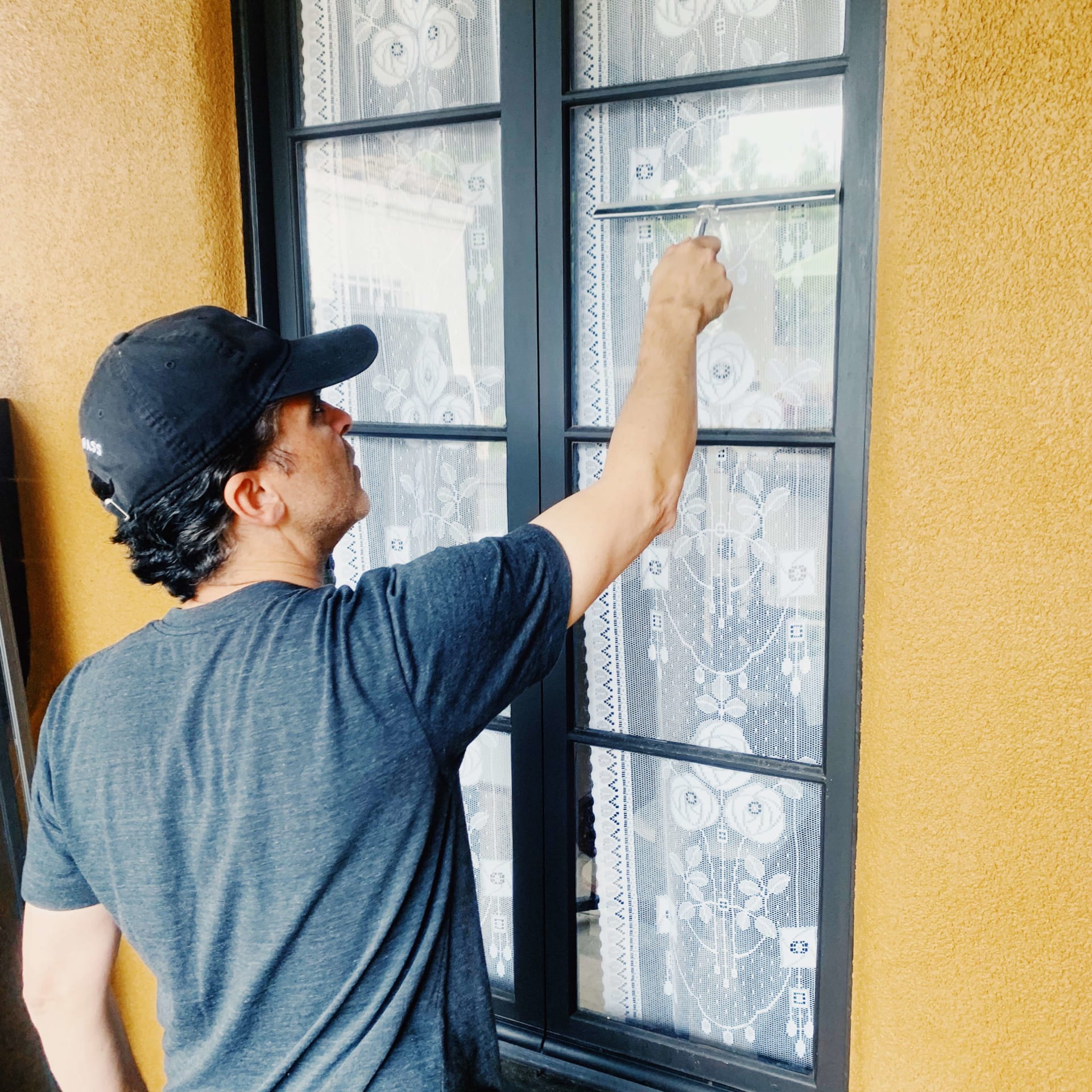 -Next is squeegee time. Get a 30 degree angle from the glass. Side to side is the easiest way.
