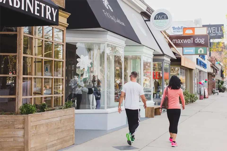 High-end retail and hip restaurants serve the professionals and families who call this San Fernando Valley community home.