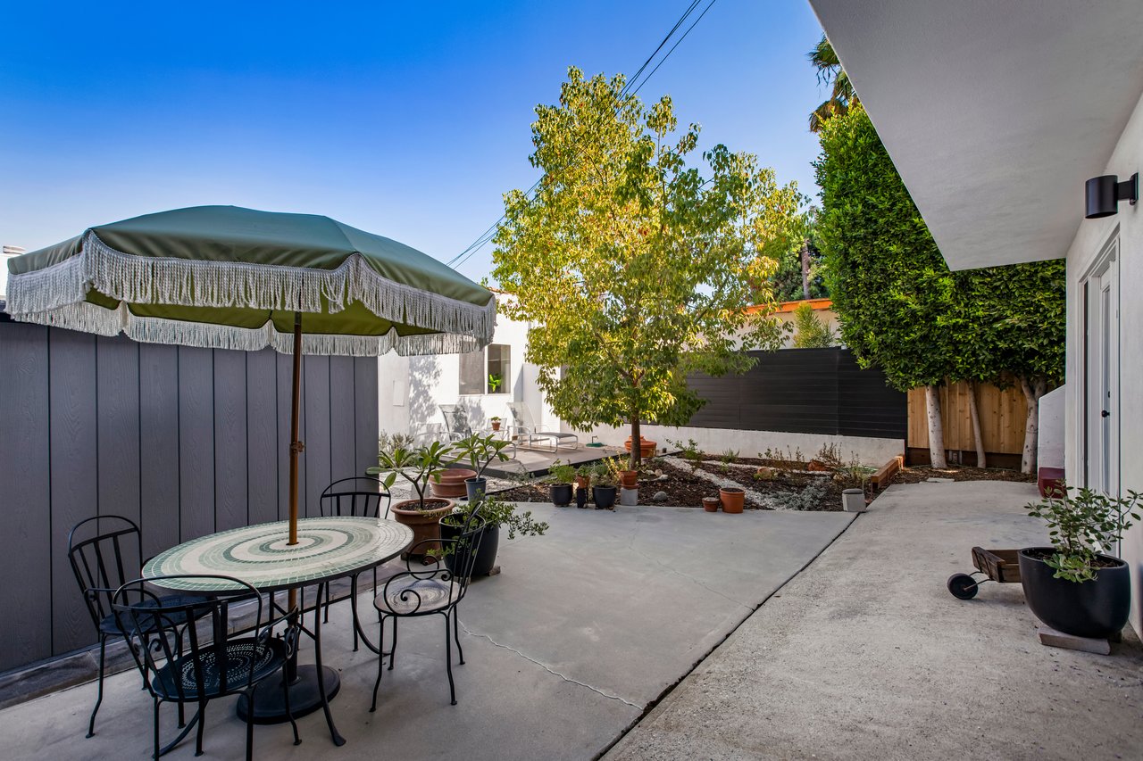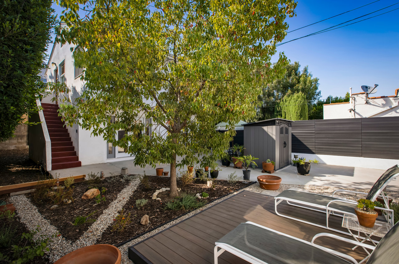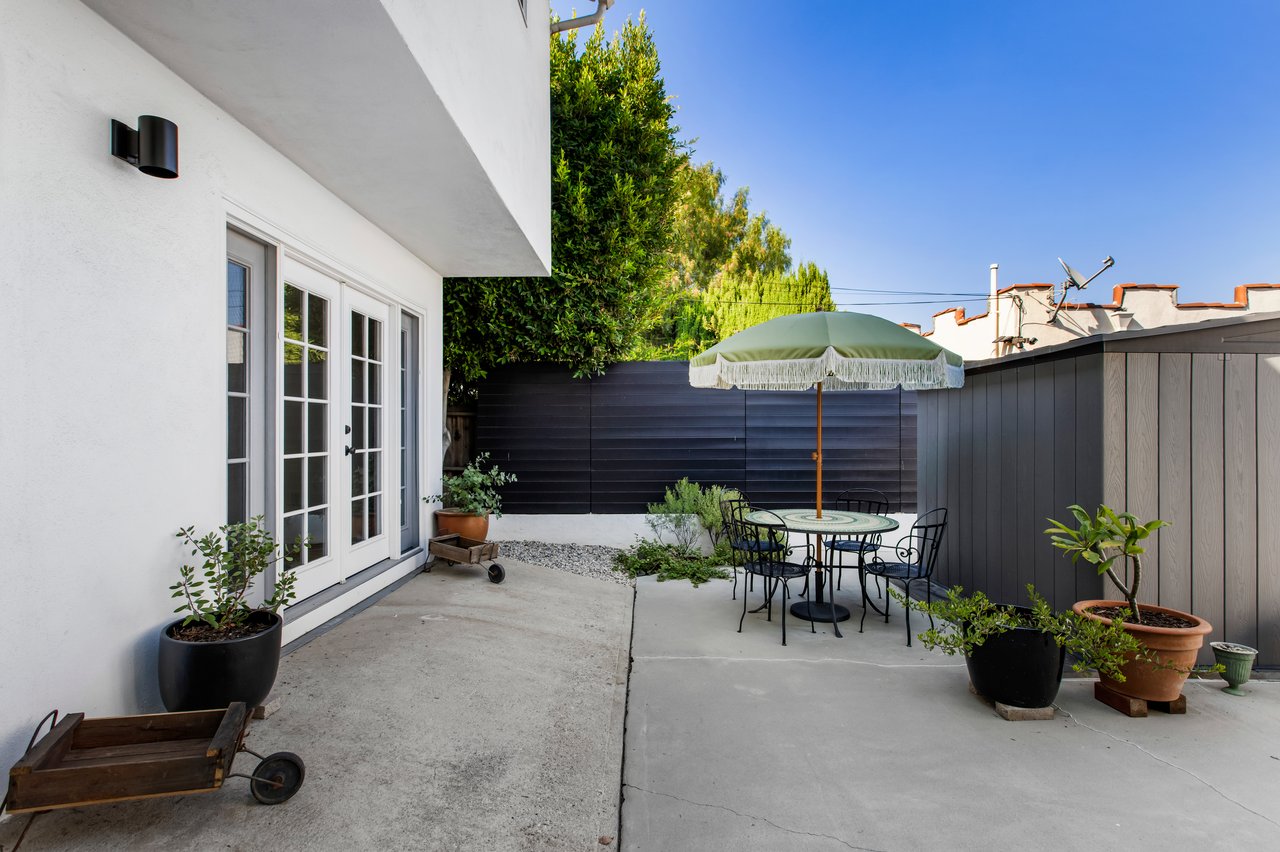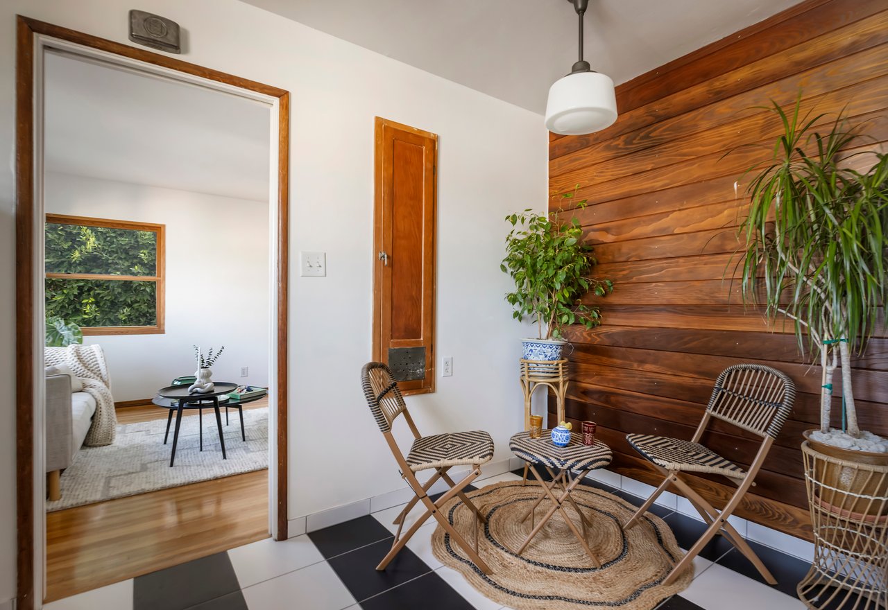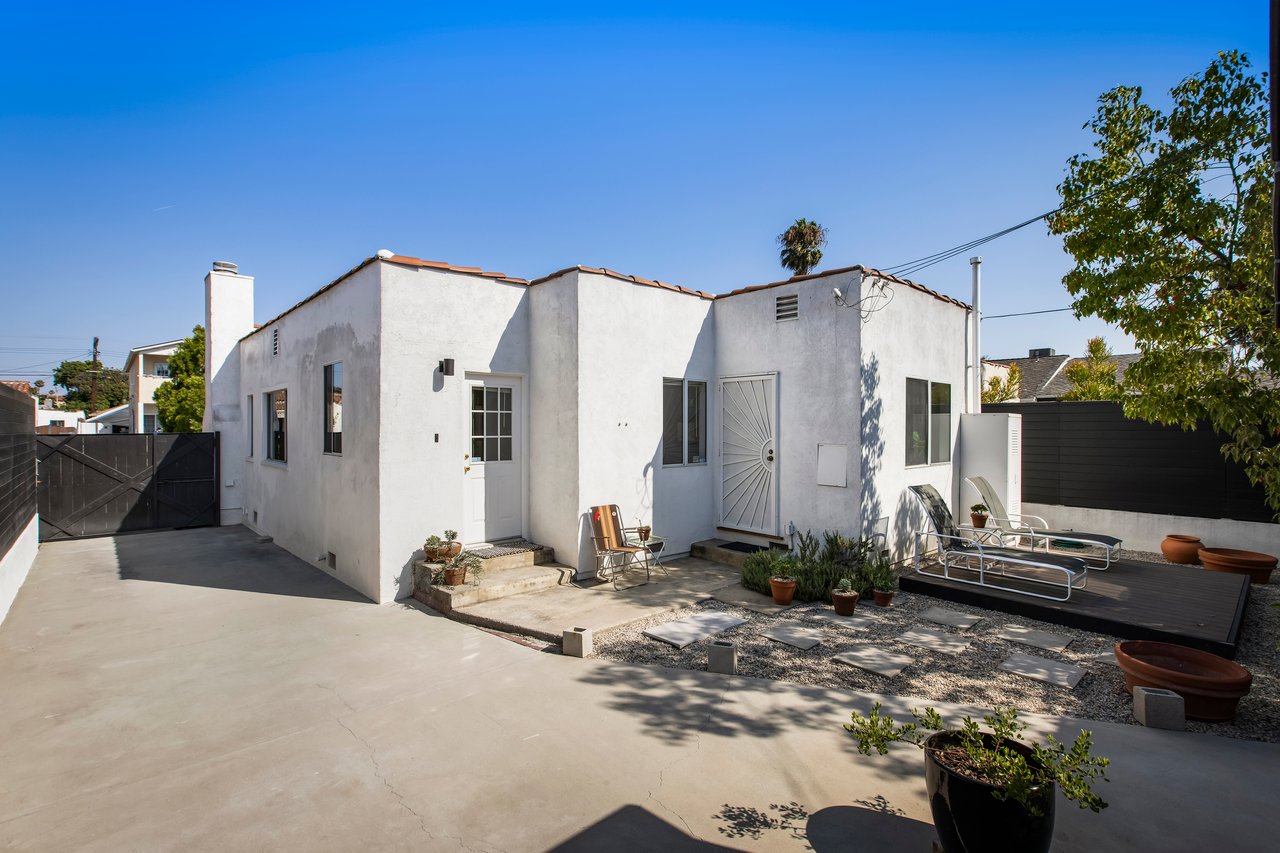 Privacy and charm are found in this Picfair Village home with ADU/guest house that will be delivered 100% vacant at closing allowing for market rents. Behind a tall Podocarpus hedge with hog wire fence topped wall you will be welcomed by a covered front porch, the perfect spot to enjoy that morning cup you picked up on your stroll to Mad Lab Coffee. This enchanting Spanish 2 bed + 2 bath home with detached freestanding 1 bed + 1 bath ADU/guest house on the 2nd floor of the rear of the property has so much to offer and more. In addition, you will discover under the back unit are two additional flex spaces, one with full bath and laundry. Through the front door you will discover a spacious living room with gas fireplace. This room adjoins a formal dining room with period built-in buffet that has been outfitted with newer doors/drawers. Adjacent to the dining room you will find a generous sized eat-in kitchen. The kitchen offers incredible amounts of countertop space for the many dinners you will host in this fab entertainer's home. The kitchen includes updated cabinetry, granite countertops, stainless steel dishwasher, range, refrigerator and a full-sized stacked washer/dryer. Checking everyone's boxes is a kitchen that opens up to the back yard so you can view your guests/family while honing your culinary skills. Down a large central hall is a front bedroom with custom closet and drawers. Two bathrooms flank the hall. The 1st bath serves guests & the front bedroom, with a tub over shower. The primary bath has a separate bathtub and large shower with two pedestal sinks. The primary suite is a true retreat. The bedroom features a walk-in closet and custom built-in desk with bookcase and drawers. A perfect spot to pen your next script or song with the dreamy views of the succulent garden for your inspiration. As you leave the primary bedroom through the door to the succulent garden with Trex deck that is the perfect spot to relax after a day in the garden under the shade of a Camphor tree. Further outdoor space is set-up for dining/lounging. Upstairs you will find an east facing spacious 1 bedroom + 1 bath ADU/guest unit that has a very period vibe with hardwood floors throughout and outfitted with dreamy wood-stained trim, including double paned windows. In the eat-in kitchen are warm wood paneled walls with Ikea cabinetry, butcher block counter tops, range, Miele dishwasher and stove. A peaceful bedroom that faces the hill behind is adjacent to bathroom with vintage tiled tub/shower & black painted paneling giving it a very chic feel. Downstairs are two flex spaces, both with French doors and each offering their own personality. The first includes a full-sized washer/dryer and deep laundry sink with cabinet where you can clean off your clogs and the hand trowel you pulled out of the newer storage shed after a day of gardening, or a place to wash your paint brushes and palette. This flex room has a very modern vibe that is set off by polished concrete floors and smooth light-colored wood paneling. Through the opaque glass door, you will discover a spa size shower with rainfall showerhead. The designer choices of tile and finishes in this room are ready for your Pinterest. The other flex room with laminate flooring and recessed lighting is perfect as a studio space, gym or office. Behind the two-story rear ADU/Guest house is an additional open space that would be perfect as another spot for gardening or used as private yard for the upstairs space. We said this property has it all. The vision is all yours now how to utilize all the great space this property has to offer. Other notable features in the main house are: oak hardwood floors, recessed lighting & central HVAC. Welcome to the paradise you have found in Casa Carmona. Set in the very walkable Mid-City neighborhood of Picfair Village with its annual pumpkin race, neighborhood feel, steps to local cafes and minutes to DTLA, the Westside, and Beverly Hills.