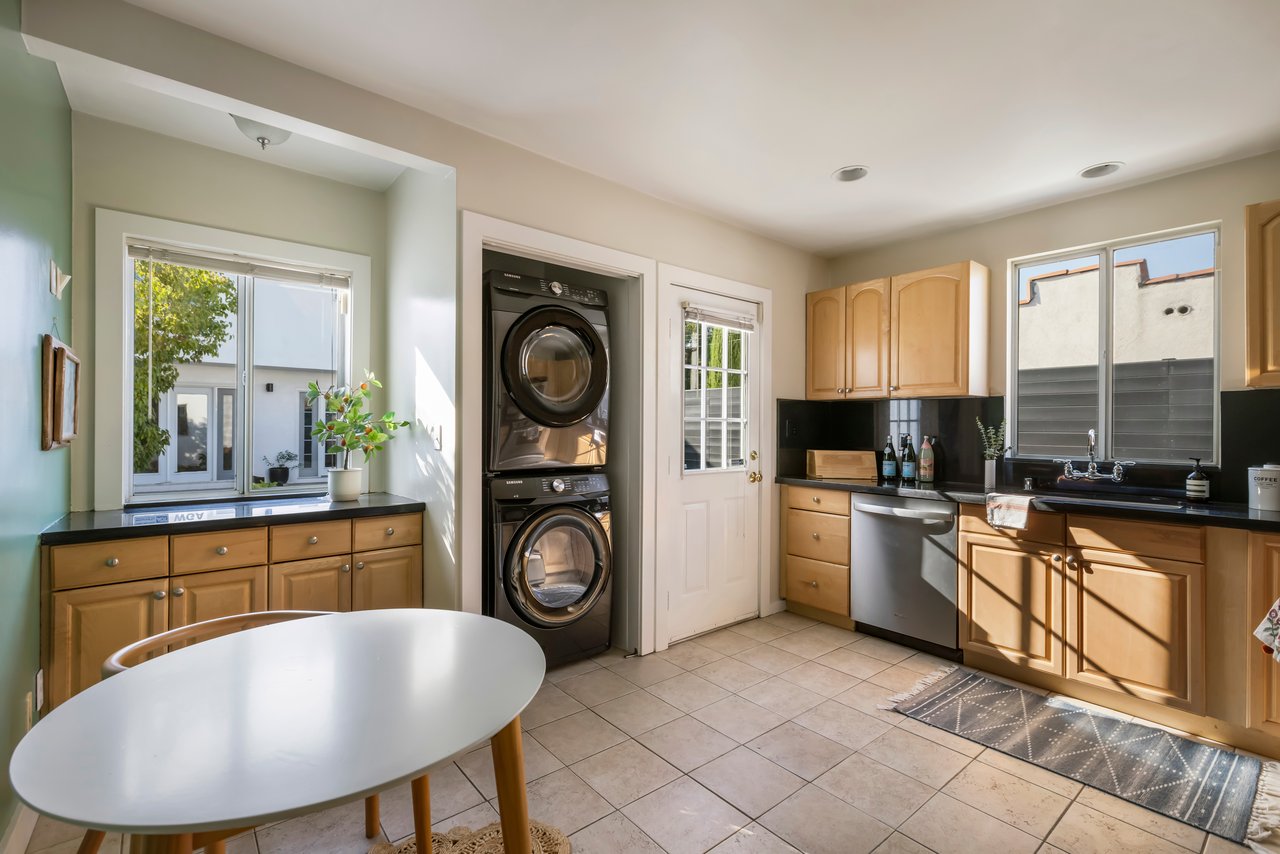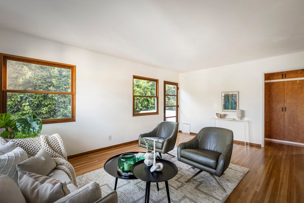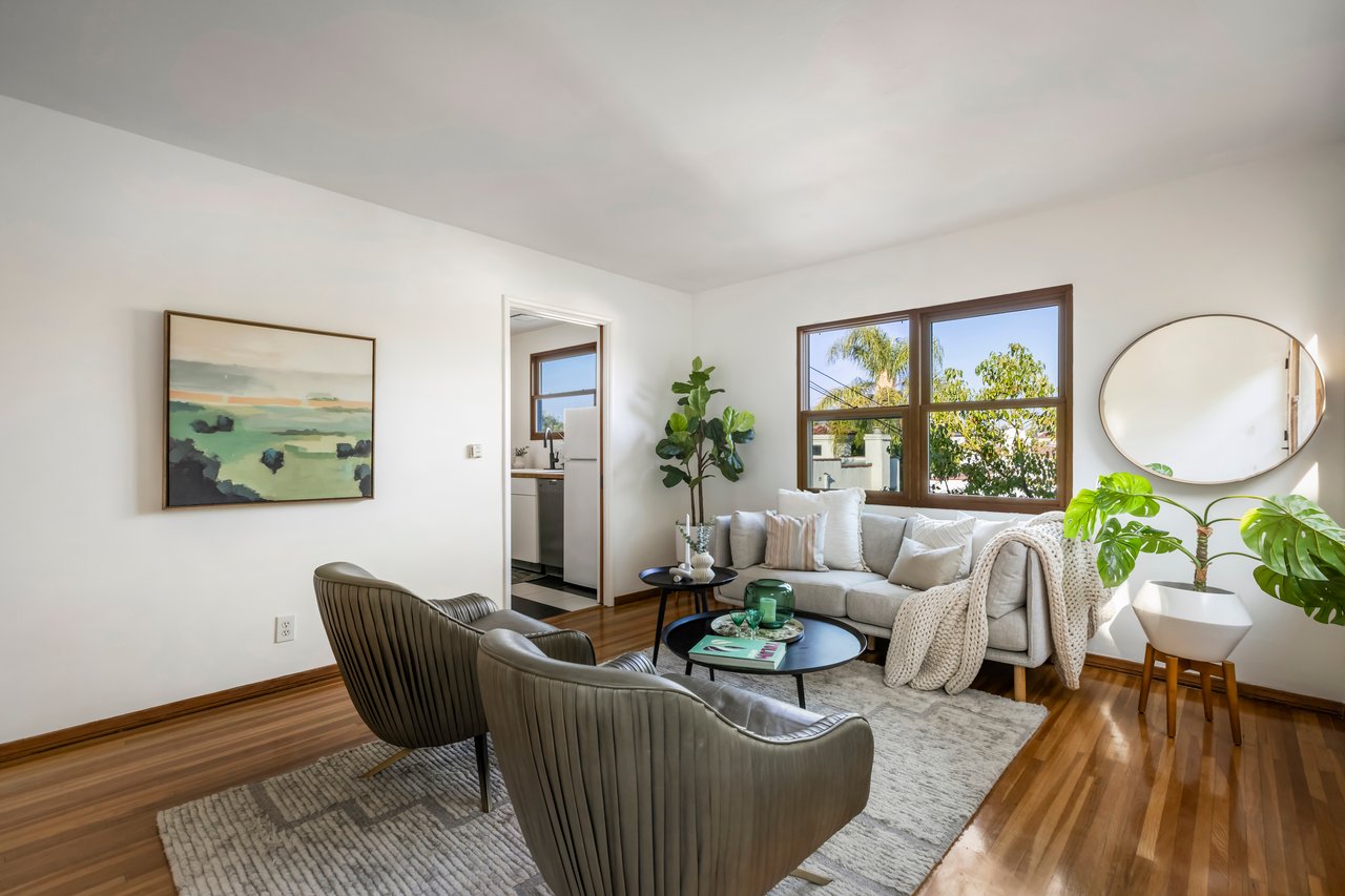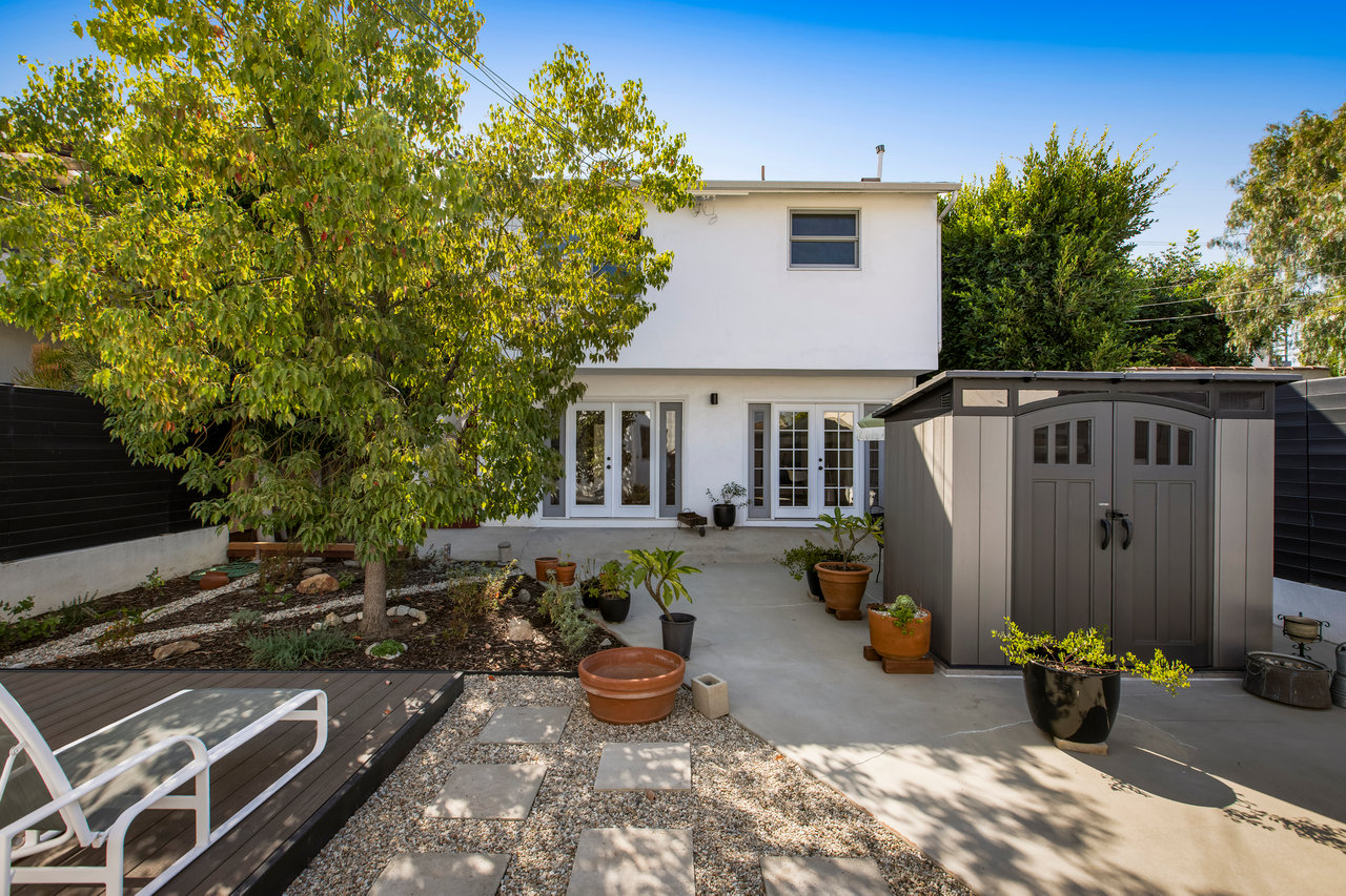 Privacy and charm are found in this Picfair Village home with ADU/guest house that will be delivered 100% vacant at closing allowing for market rents. Behind a tall Podocarpus hedge with hog wire fence topped wall you will be welcomed by a covered front porch, the perfect spot to enjoy that morning cup you picked up on your stroll to Mad Lab Coffee. This enchanting Spanish 2 bed + 2 bath home with detached freestanding 1 bed + 1 bath ADU/guest house on the 2nd floor of the rear of the property has so much to offer and more. In addition, you will discover under the back unit are two additional flex spaces, one with full bath and laundry. Through the front door you will discover a spacious living room with gas fireplace. This room adjoins a formal dining room with period built-in buffet that has been outfitted with newer doors/drawers. Adjacent to the dining room you will find a generous sized eat-in kitchen. The kitchen offers incredible amounts of countertop space for the many dinners you will host in this fab entertainer's home. The kitchen includes updated cabinetry, granite countertops, stainless steel dishwasher, range, refrigerator and a full-sized stacked washer/dryer. Checking everyone's boxes is a kitchen that opens up to the back yard so you can view your guests/family while honing your culinary skills. Down a large central hall is a front bedroom with custom closet and drawers. Two bathrooms flank the hall. The 1st bath serves guests & the front bedroom, with a tub over shower. The primary bath has a separate bathtub and large shower with two pedestal sinks. The primary suite is a true retreat. The bedroom features a walk-in closet and custom built-in desk with bookcase and drawers. A perfect spot to pen your next script or song with the dreamy views of the succulent garden for your inspiration. As you leave the primary bedroom through the door to the succulent garden with Trex deck that is the perfect spot to relax after a day in the garden under the shade of a Camphor tree. Further outdoor space is set-up for dining/lounging. Upstairs you will find an east facing spacious 1 bedroom + 1 bath ADU/guest unit that has a very period vibe with hardwood floors throughout and outfitted with dreamy wood-stained trim, including double paned windows. In the eat-in kitchen are warm wood paneled walls with Ikea cabinetry, butcher block counter tops, range, Miele dishwasher and stove. A peaceful bedroom that faces the hill behind is adjacent to bathroom with vintage tiled tub/shower & black painted paneling giving it a very chic feel. Downstairs are two flex spaces, both with French doors and each offering their own personality. The first includes a full-sized washer/dryer and deep laundry sink with cabinet where you can clean off your clogs and the hand trowel you pulled out of the newer storage shed after a day of gardening, or a place to wash your paint brushes and palette. This flex room has a very modern vibe that is set off by polished concrete floors and smooth light-colored wood paneling. Through the opaque glass door, you will discover a spa size shower with rainfall showerhead. The designer choices of tile and finishes in this room are ready for your Pinterest. The other flex room with laminate flooring and recessed lighting is perfect as a studio space, gym or office. Behind the two-story rear ADU/Guest house is an additional open space that would be perfect as another spot for gardening or used as private yard for the upstairs space. We said this property has it all. The vision is all yours now how to utilize all the great space this property has to offer. Other notable features in the main house are: oak hardwood floors, recessed lighting & central HVAC. Welcome to the paradise you have found in Casa Carmona. Set in the very walkable Mid-City neighborhood of Picfair Village with its annual pumpkin race, neighborhood feel, steps to local cafes and minutes to DTLA, the Westside, and Beverly Hills.