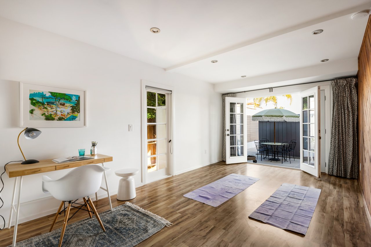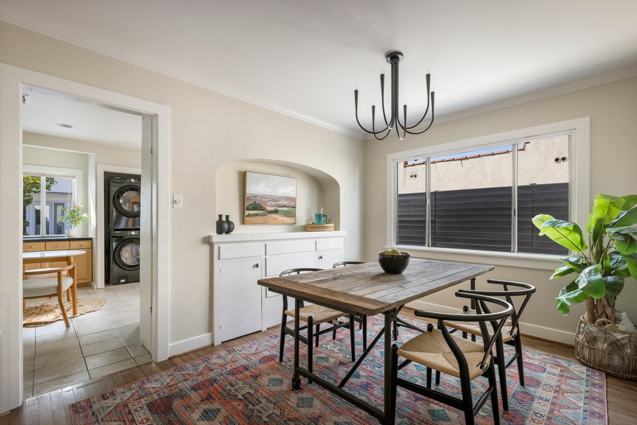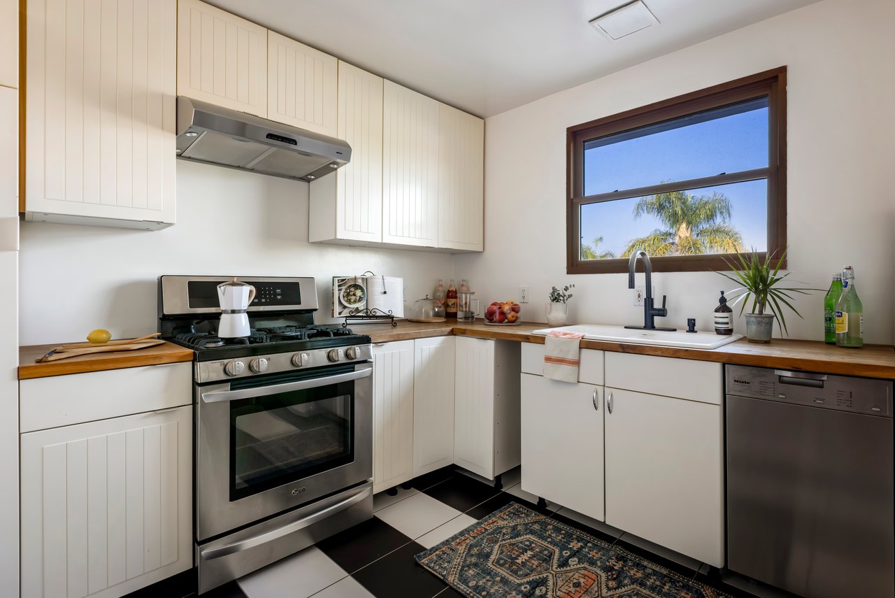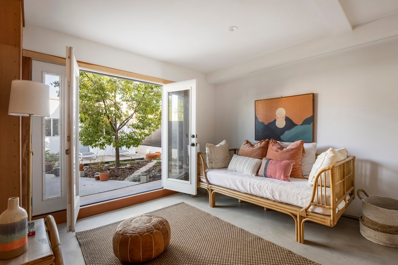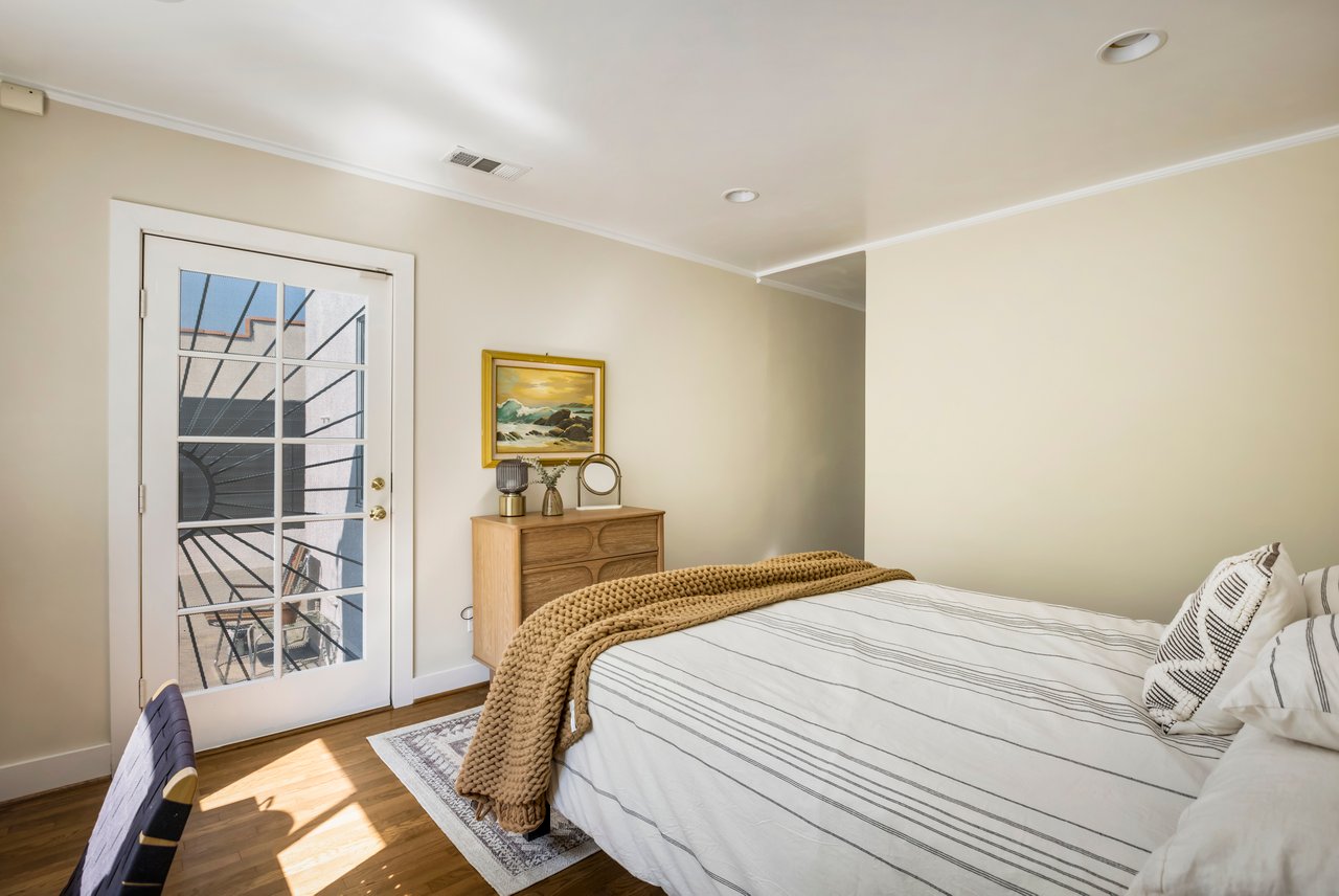 Privacy and charm are found in this Picfair Village home with ADU/guest house that will be delivered 100% vacant at closing allowing for market rents. Behind a tall Podocarpus hedge with hog wire fence topped wall you will be welcomed by a covered front porch, the perfect spot to enjoy that morning cup you picked up on your stroll to Mad Lab Coffee. This enchanting Spanish 2 bed + 2 bath home with detached freestanding 1 bed + 1 bath ADU/guest house on the 2nd floor of the rear of the property has so much to offer and more. In addition, you will discover under the back unit are two additional flex spaces, one with full bath and laundry. Through the front door you will discover a spacious living room with gas fireplace. This room adjoins a formal dining room with period built-in buffet that has been outfitted with newer doors/drawers. Adjacent to the dining room you will find a generous sized eat-in kitchen. The kitchen offers incredible amounts of countertop space for the many dinners you will host in this fab entertainer's home. The kitchen includes updated cabinetry, granite countertops, stainless steel dishwasher, range, refrigerator and a full-sized stacked washer/dryer. Checking everyone's boxes is a kitchen that opens up to the back yard so you can view your guests/family while honing your culinary skills. Down a large central hall is a front bedroom with custom closet and drawers. Two bathrooms flank the hall. The 1st bath serves guests & the front bedroom, with a tub over shower. The primary bath has a separate bathtub and large shower with two pedestal sinks. The primary suite is a true retreat. The bedroom features a walk-in closet and custom built-in desk with bookcase and drawers. A perfect spot to pen your next script or song with the dreamy views of the succulent garden for your inspiration. As you leave the primary bedroom through the door to the succulent garden with Trex deck that is the perfect spot to relax after a day in the garden under the shade of a Camphor tree. Further outdoor space is set-up for dining/lounging. Upstairs you will find an east facing spacious 1 bedroom + 1 bath ADU/guest unit that has a very period vibe with hardwood floors throughout and outfitted with dreamy wood-stained trim, including double paned windows. In the eat-in kitchen are warm wood paneled walls with Ikea cabinetry, butcher block counter tops, range, Miele dishwasher and stove. A peaceful bedroom that faces the hill behind is adjacent to bathroom with vintage tiled tub/shower & black painted paneling giving it a very chic feel. Downstairs are two flex spaces, both with French doors and each offering their own personality. The first includes a full-sized washer/dryer and deep laundry sink with cabinet where you can clean off your clogs and the hand trowel you pulled out of the newer storage shed after a day of gardening, or a place to wash your paint brushes and palette. This flex room has a very modern vibe that is set off by polished concrete floors and smooth light-colored wood paneling. Through the opaque glass door, you will discover a spa size shower with rainfall showerhead. The designer choices of tile and finishes in this room are ready for your Pinterest. The other flex room with laminate flooring and recessed lighting is perfect as a studio space, gym or office. Behind the two-story rear ADU/Guest house is an additional open space that would be perfect as another spot for gardening or used as private yard for the upstairs space. We said this property has it all. The vision is all yours now how to utilize all the great space this property has to offer. Other notable features in the main house are: oak hardwood floors, recessed lighting & central HVAC. Welcome to the paradise you have found in Casa Carmona. Set in the very walkable Mid-City neighborhood of Picfair Village with its annual pumpkin race, neighborhood feel, steps to local cafes and minutes to DTLA, the Westside, and Beverly Hills.