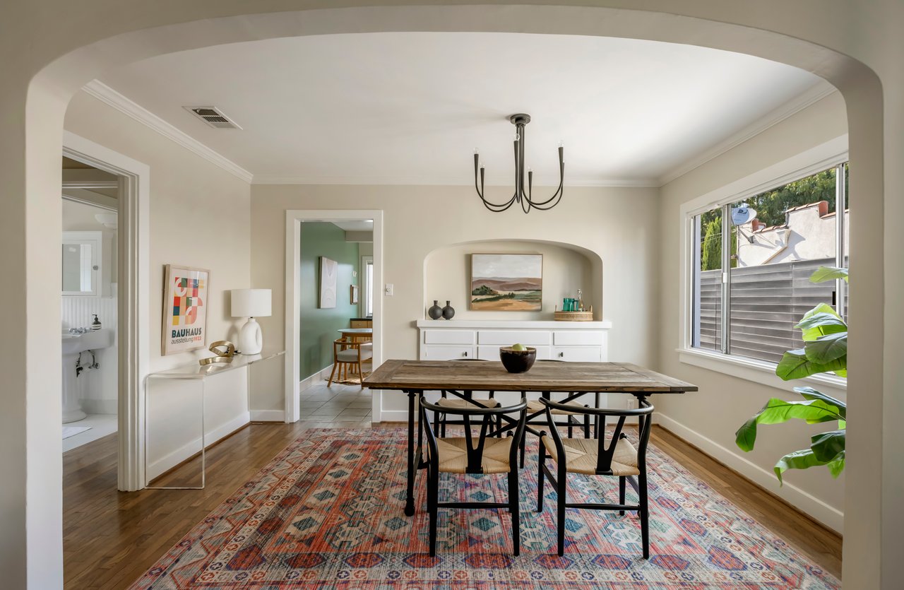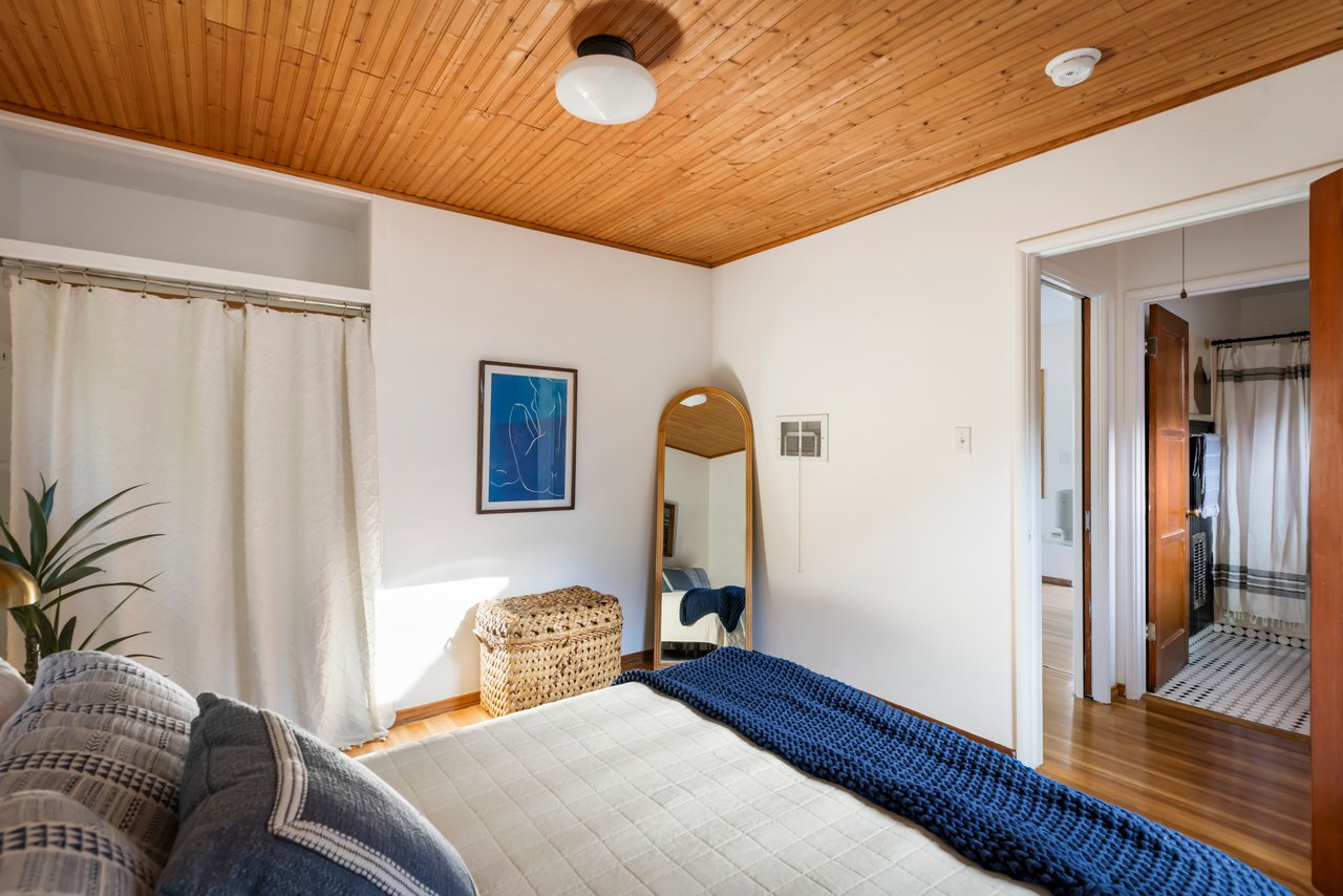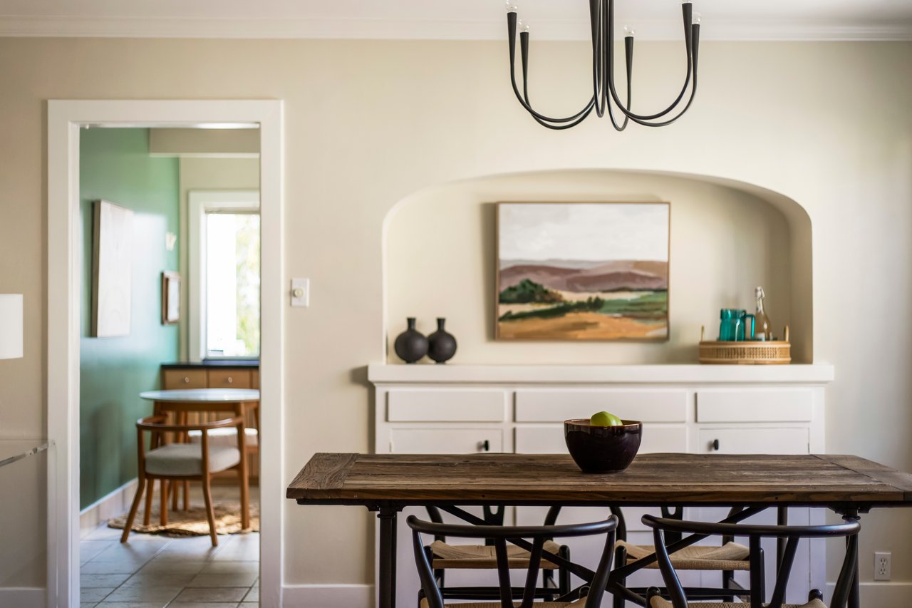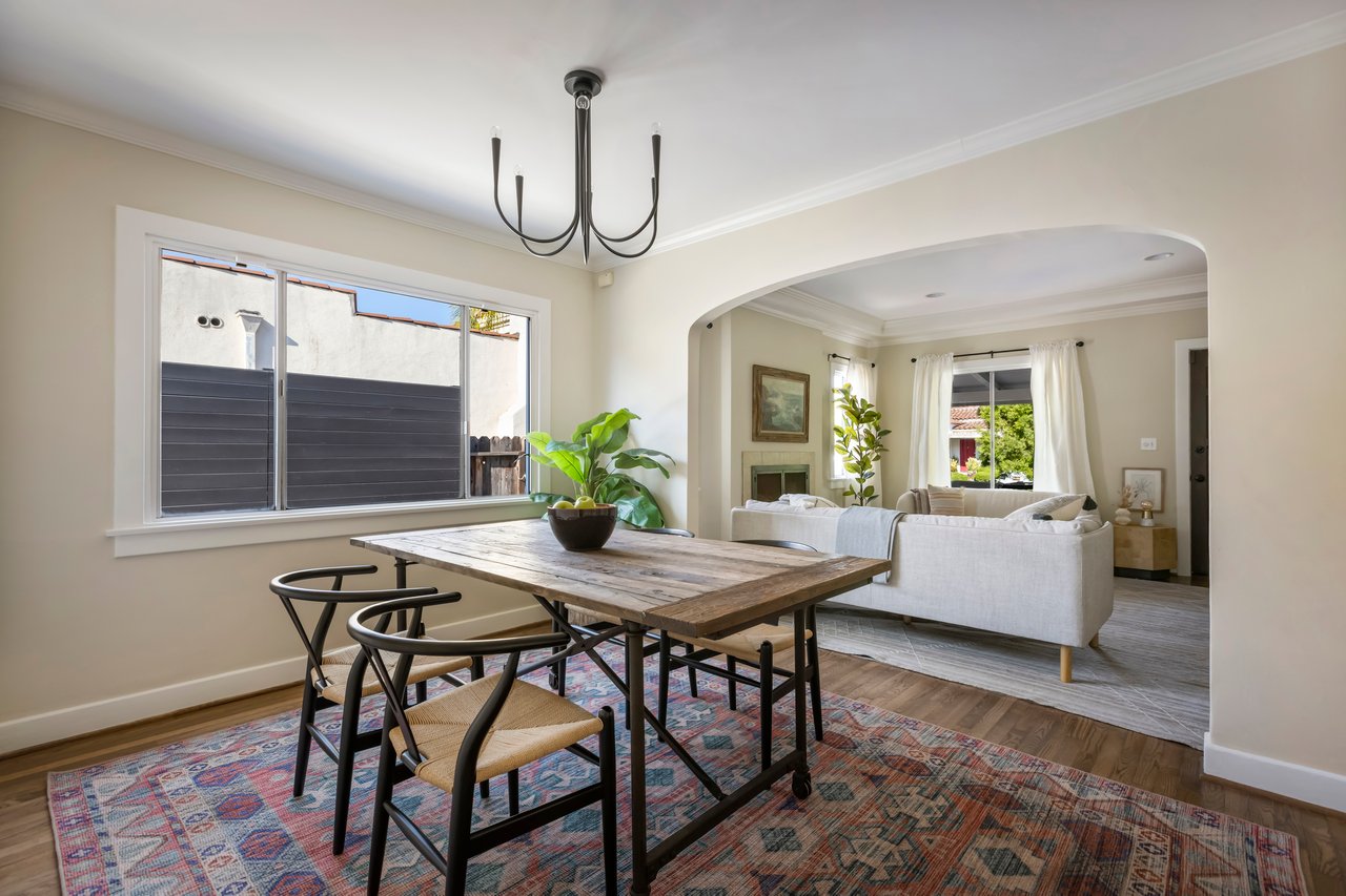 Privacy and charm are found in this Picfair Village home with ADU/guest house that will be delivered 100% vacant at closing allowing for market rents. Behind a tall Podocarpus hedge with hog wire fence topped wall you will be welcomed by a covered front porch, the perfect spot to enjoy that morning cup you picked up on your stroll to Mad Lab Coffee. This enchanting Spanish 2 bed + 2 bath home with detached freestanding 1 bed + 1 bath ADU/guest house on the 2nd floor of the rear of the property has so much to offer and more. In addition, you will discover under the back unit are two additional flex spaces, one with full bath and laundry. Through the front door you will discover a spacious living room with gas fireplace. This room adjoins a formal dining room with period built-in buffet that has been outfitted with newer doors/drawers. Adjacent to the dining room you will find a generous sized eat-in kitchen. The kitchen offers incredible amounts of countertop space for the many dinners you will host in this fab entertainer's home. The kitchen includes updated cabinetry, granite countertops, stainless steel dishwasher, range, refrigerator and a full-sized stacked washer/dryer. Checking everyone's boxes is a kitchen that opens up to the back yard so you can view your guests/family while honing your culinary skills. Down a large central hall is a front bedroom with custom closet and drawers. Two bathrooms flank the hall. The 1st bath serves guests & the front bedroom, with a tub over shower. The primary bath has a separate bathtub and large shower with two pedestal sinks. The primary suite is a true retreat. The bedroom features a walk-in closet and custom built-in desk with bookcase and drawers. A perfect spot to pen your next script or song with the dreamy views of the succulent garden for your inspiration. As you leave the primary bedroom through the door to the succulent garden with Trex deck that is the perfect spot to relax after a day in the garden under the shade of a Camphor tree. Further outdoor space is set-up for dining/lounging. Upstairs you will find an east facing spacious 1 bedroom + 1 bath ADU/guest unit that has a very period vibe with hardwood floors throughout and outfitted with dreamy wood-stained trim, including double paned windows. In the eat-in kitchen are warm wood paneled walls with Ikea cabinetry, butcher block counter tops, range, Miele dishwasher and stove. A peaceful bedroom that faces the hill behind is adjacent to bathroom with vintage tiled tub/shower & black painted paneling giving it a very chic feel. Downstairs are two flex spaces, both with French doors and each offering their own personality. The first includes a full-sized washer/dryer and deep laundry sink with cabinet where you can clean off your clogs and the hand trowel you pulled out of the newer storage shed after a day of gardening, or a place to wash your paint brushes and palette. This flex room has a very modern vibe that is set off by polished concrete floors and smooth light-colored wood paneling. Through the opaque glass door, you will discover a spa size shower with rainfall showerhead. The designer choices of tile and finishes in this room are ready for your Pinterest. The other flex room with laminate flooring and recessed lighting is perfect as a studio space, gym or office. Behind the two-story rear ADU/Guest house is an additional open space that would be perfect as another spot for gardening or used as private yard for the upstairs space. We said this property has it all. The vision is all yours now how to utilize all the great space this property has to offer. Other notable features in the main house are: oak hardwood floors, recessed lighting & central HVAC. Welcome to the paradise you have found in Casa Carmona. Set in the very walkable Mid-City neighborhood of Picfair Village with its annual pumpkin race, neighborhood feel, steps to local cafes and minutes to DTLA, the Westside, and Beverly Hills.