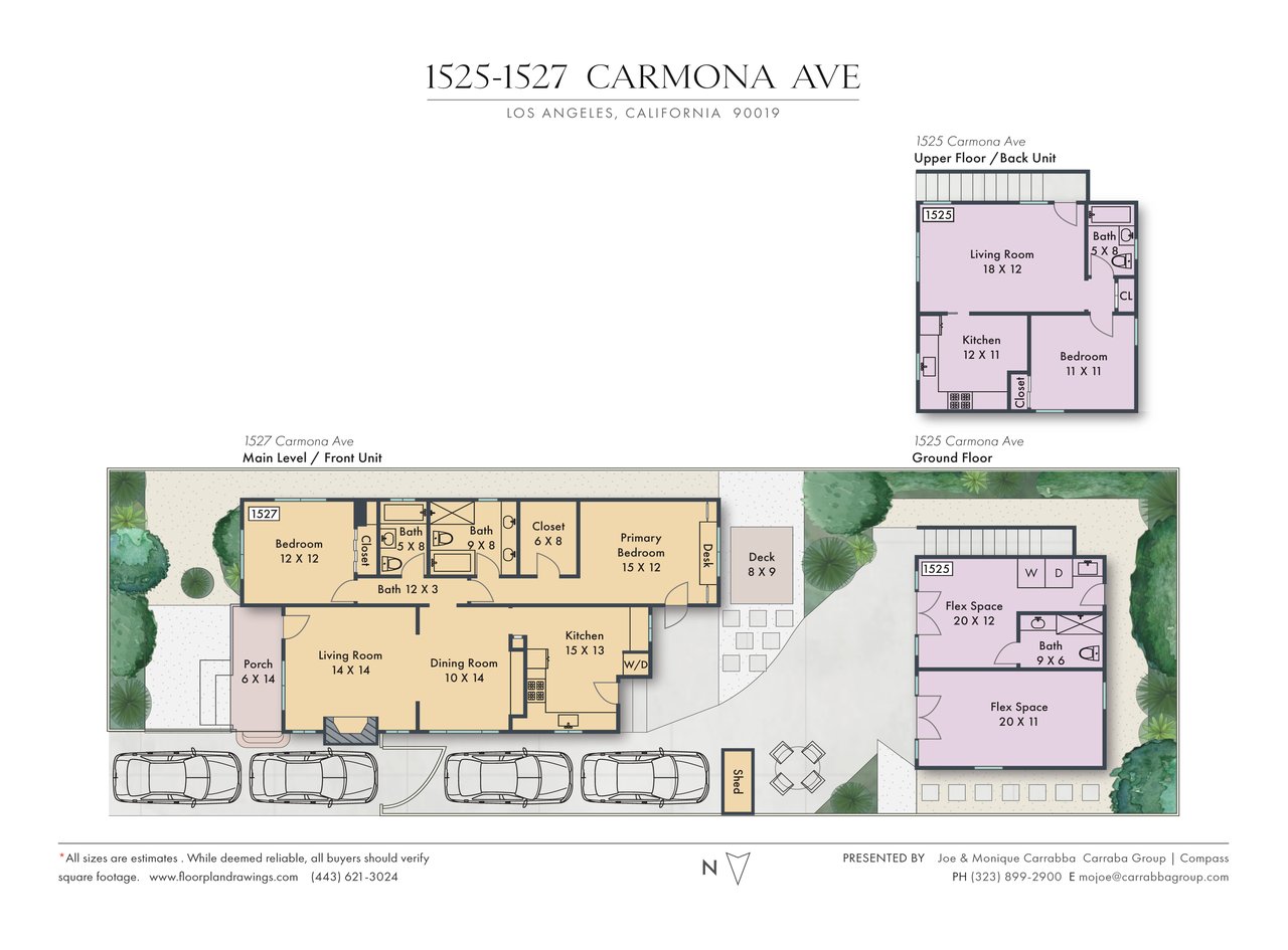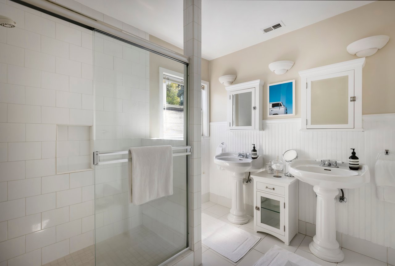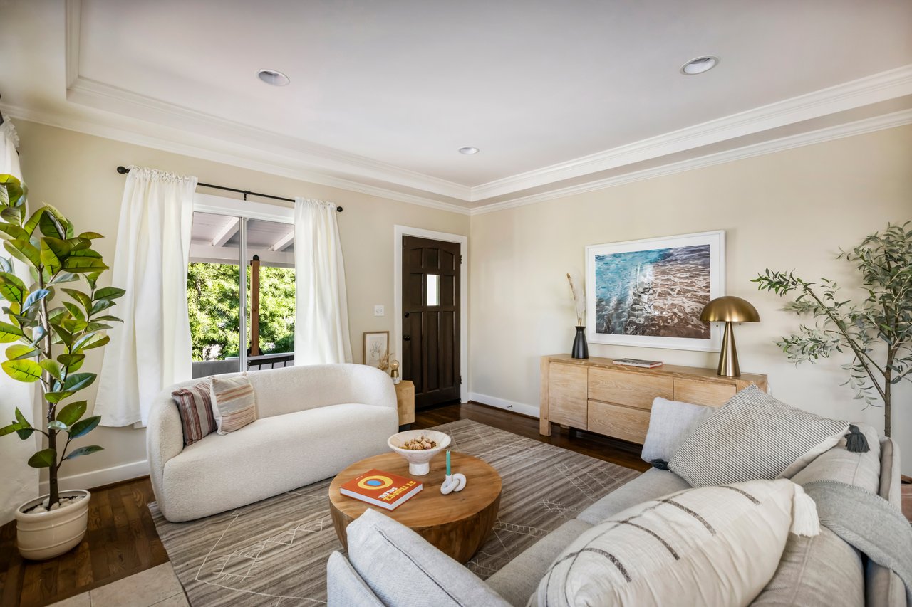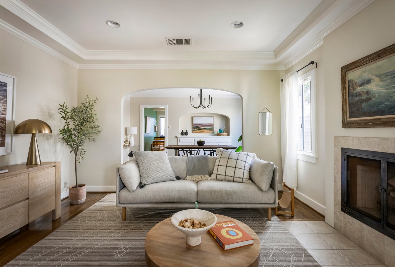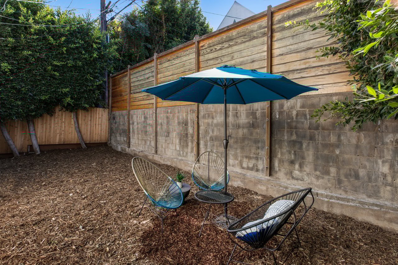 Privacy and charm are found in this Picfair Village home with ADU/guest house that will be delivered 100% vacant at closing allowing for market rents. Behind a tall Podocarpus hedge with hog wire fence topped wall you will be welcomed by a covered front porch, the perfect spot to enjoy that morning cup you picked up on your stroll to Mad Lab Coffee. This enchanting Spanish 2 bed + 2 bath home with detached freestanding 1 bed + 1 bath ADU/guest house on the 2nd floor of the rear of the property has so much to offer and more. In addition, you will discover under the back unit are two additional flex spaces, one with full bath and laundry. Through the front door you will discover a spacious living room with gas fireplace. This room adjoins a formal dining room with period built-in buffet that has been outfitted with newer doors/drawers. Adjacent to the dining room you will find a generous sized eat-in kitchen. The kitchen offers incredible amounts of countertop space for the many dinners you will host in this fab entertainer's home. The kitchen includes updated cabinetry, granite countertops, stainless steel dishwasher, range, refrigerator and a full-sized stacked washer/dryer. Checking everyone's boxes is a kitchen that opens up to the back yard so you can view your guests/family while honing your culinary skills. Down a large central hall is a front bedroom with custom closet and drawers. Two bathrooms flank the hall. The 1st bath serves guests & the front bedroom, with a tub over shower. The primary bath has a separate bathtub and large shower with two pedestal sinks. The primary suite is a true retreat. The bedroom features a walk-in closet and custom built-in desk with bookcase and drawers. A perfect spot to pen your next script or song with the dreamy views of the succulent garden for your inspiration. As you leave the primary bedroom through the door to the succulent garden with Trex deck that is the perfect spot to relax after a day in the garden under the shade of a Camphor tree. Further outdoor space is set-up for dining/lounging. Upstairs you will find an east facing spacious 1 bedroom + 1 bath ADU/guest unit that has a very period vibe with hardwood floors throughout and outfitted with dreamy wood-stained trim, including double paned windows. In the eat-in kitchen are warm wood paneled walls with Ikea cabinetry, butcher block counter tops, range, Miele dishwasher and stove. A peaceful bedroom that faces the hill behind is adjacent to bathroom with vintage tiled tub/shower & black painted paneling giving it a very chic feel. Downstairs are two flex spaces, both with French doors and each offering their own personality. The first includes a full-sized washer/dryer and deep laundry sink with cabinet where you can clean off your clogs and the hand trowel you pulled out of the newer storage shed after a day of gardening, or a place to wash your paint brushes and palette. This flex room has a very modern vibe that is set off by polished concrete floors and smooth light-colored wood paneling. Through the opaque glass door, you will discover a spa size shower with rainfall showerhead. The designer choices of tile and finishes in this room are ready for your Pinterest. The other flex room with laminate flooring and recessed lighting is perfect as a studio space, gym or office. Behind the two-story rear ADU/Guest house is an additional open space that would be perfect as another spot for gardening or used as private yard for the upstairs space. We said this property has it all. The vision is all yours now how to utilize all the great space this property has to offer. Other notable features in the main house are: oak hardwood floors, recessed lighting & central HVAC. Welcome to the paradise you have found in Casa Carmona. Set in the very walkable Mid-City neighborhood of Picfair Village with its annual pumpkin race, neighborhood feel, steps to local cafes and minutes to DTLA, the Westside, and Beverly Hills.