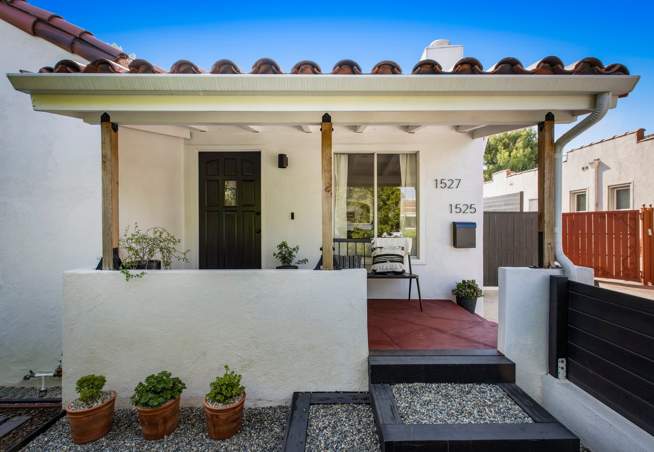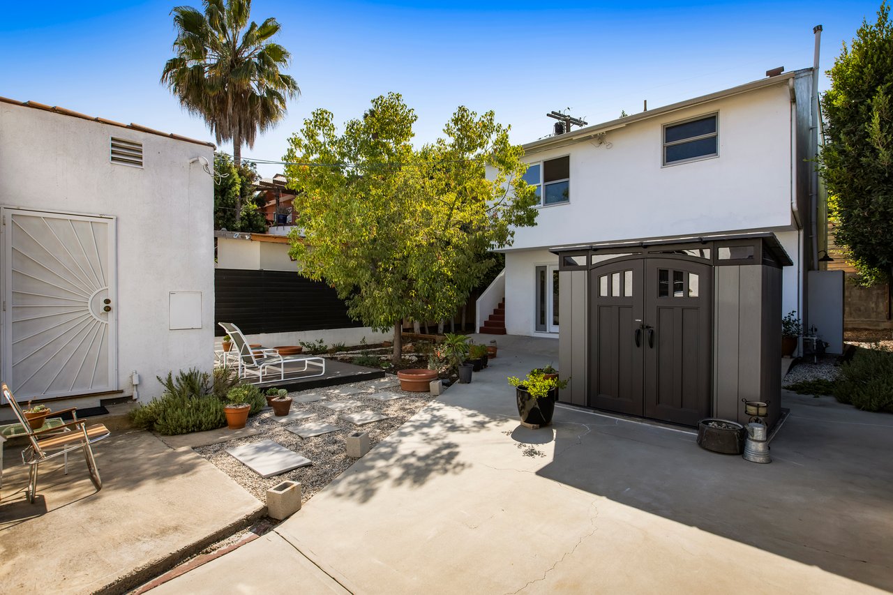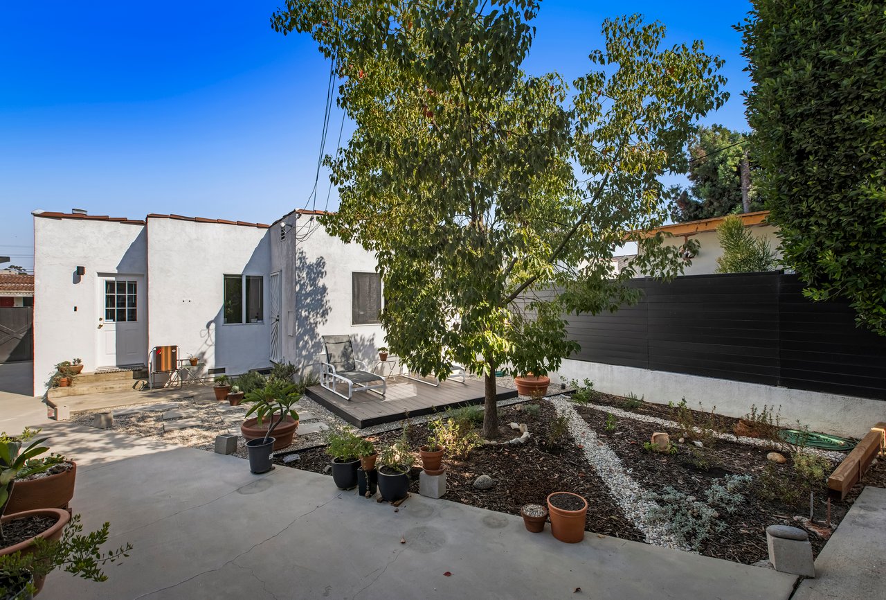Privacy and charm are found in this Mid-City duplex in Picfair Village that will be delivered 100% vacant at closing allowing for market rents. Behind a tall Podocarpus hedge with hog wire fence topped wall you will be welcomed by a covered front porch, the perfect spot to enjoy that morning cup you picked up on your stroll to Mad Lab Coffee. This enchanting Spanish 2 bed + 2 bath home with detached freestanding 1 bed + 1 bath unit on the 2nd floor of the rear of the property has so much to offer and more. In addition, you will discover under the back unit are two additional flex spaces, one with full bath and laundry. Through the front door you will discover a spacious living room with gas fireplace. This room adjoins a formal dining room with period built-in buffet that has been outfitted with newer doors/drawers. Adjacent to the dining room you will find a generous sized eat-in kitchen. The kitchen offers incredible amounts of countertop space to spread out your ingredients for the many dinners you will host in this fab entertainer's home. The kitchen includes updated cabinetry, granite countertops, stainless steel dishwasher, range, refrigerator and a full-sized stacked washer/dryer. Checking everyone's boxes is a kitchen that opens up to the back yard so you can view your guests/family while honing your culinary skills. Down a large central hall is a front bedroom with custom closet and drawers. Two bathrooms flank the hall. The 1st bathroom serves guests & the front bedroom, with a tub over shower. The primary bath has a separate bathtub and large shower with two pedestal sinks. The primary suite is a true retreat. The bedroom features a walk-in closet and custom built-in desk with bookcase and drawers. A perfect spot to pen your next script or song with the dreamy views of the succulent garden for your inspiration. As you leave the primary bedroom through the door to the succulent garden with Trex deck that is the perfect spot to relax after a day in the garden under the shade of a Camphor tree. Further outdoor space is set-up for dining/lounging. Upstairs you will find an east facing spacious 1 bedroom + 1 bath unit that has a very period vibe with hardwood floors throughout and outfitted with dreamy wood-stained trim, including double paned windows. In the eat-in kitchen are warm wood paneled walls with Ikea cabinetry, butcher block counter tops, range, Miele dishwasher and stove. A peaceful bedroom that faces the hill behind is adjacent to bathroom with vintage tiled tub/shower & black painted paneling giving it a very chic feel. Downstairs are two flex spaces, both with French doors and each offering their own personality. The first includes a full-sized washer/dryer and deep laundry sink with cabinet where you can clean off your clogs and the hand trowel you pulled out of the newer storage shed after a day of gardening, or a place to wash your paint brushes and palette. This flex room has a very modern vibe that is set off by polished concrete floors and smooth light-colored wood paneling. Through the opaque glass door, you will discover a spa size shower with rainfall shower head. The designer choices of tile and finishes in this room are ready for your Pinterest. The other flex room with laminate flooring and recessed lighting is perfect as a studio space, gym or office. Behind the two-story rear unit is an additional open space that would be perfect as another spot for gardening or used as private yard for the upstairs unit. We said this property has it all. The vision is all yours now how to utilize all the great space this property has to offer. Other notable features in the main house are: oak hardwood floors, recessed lighting & central HVAC. Welcome to the paradise you have found in Casa Carmona. Set in the very walkable Mid-City neighborhood of Picfair Village with its annual pumpkin race, neighborhood feel, steps to local cafes and minutes to DTLA, the Westside, Beverly Hills and LAX.