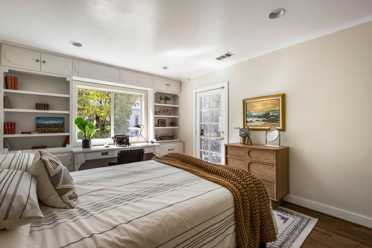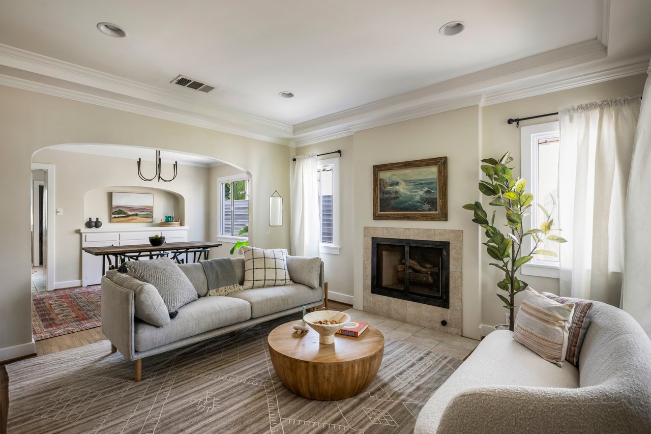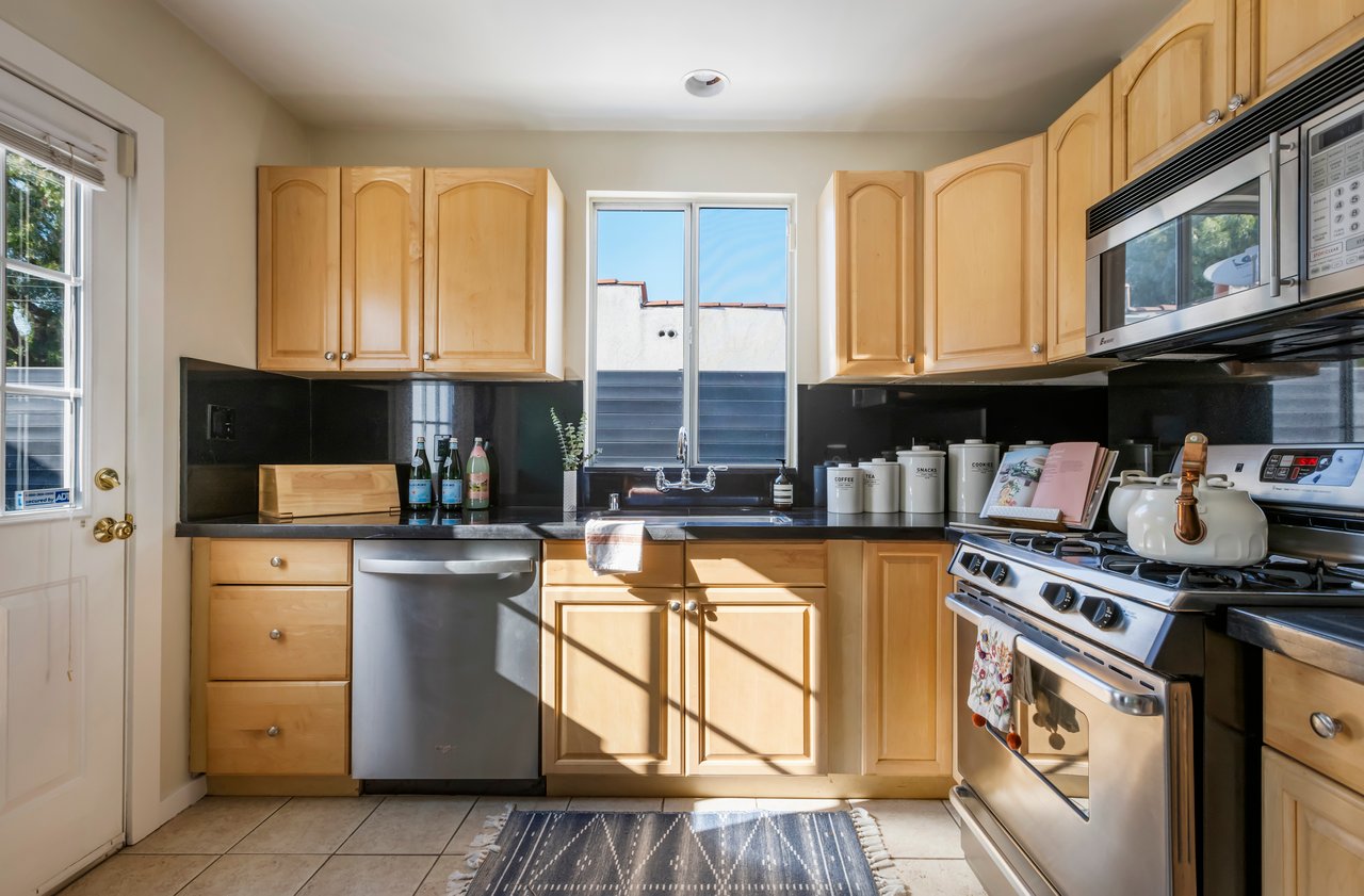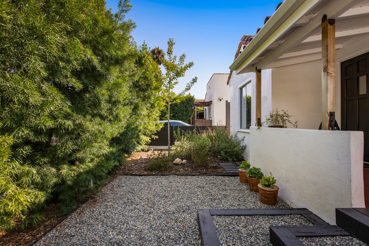 Privacy and charm are found in this Mid-City duplex in Picfair Village that will be delivered 100% vacant at closing allowing for market rents. Behind a tall Podocarpus hedge with hog wire fence topped wall you will be welcomed by a covered front porch, the perfect spot to enjoy that morning cup you picked up on your stroll to Mad Lab Coffee. This enchanting Spanish 2 bed + 2 bath home with detached freestanding 1 bed + 1 bath unit on the 2nd floor of the rear of the property has so much to offer and more. In addition, you will discover under the back unit are two additional flex spaces, one with full bath and laundry. Through the front door you will discover a spacious living room with gas fireplace. This room adjoins a formal dining room with period built-in buffet that has been outfitted with newer doors/drawers. Adjacent to the dining room you will find a generous sized eat-in kitchen. The kitchen offers incredible amounts of countertop space to spread out your ingredients for the many dinners you will host in this fab entertainer's home. The kitchen includes updated cabinetry, granite countertops, stainless steel dishwasher, range, refrigerator and a full-sized stacked washer/dryer. Checking everyone's boxes is a kitchen that opens up to the back yard so you can view your guests/family while honing your culinary skills. Down a large central hall is a front bedroom with custom closet and drawers. Two bathrooms flank the hall. The 1st bathroom serves guests & the front bedroom, with a tub over shower. The primary bath has a separate bathtub and large shower with two pedestal sinks. The primary suite is a true retreat. The bedroom features a walk-in closet and custom built-in desk with bookcase and drawers. A perfect spot to pen your next script or song with the dreamy views of the succulent garden for your inspiration. As you leave the primary bedroom through the door to the succulent garden with Trex deck that is the perfect spot to relax after a day in the garden under the shade of a Camphor tree. Further outdoor space is set-up for dining/lounging. Upstairs you will find an east facing spacious 1 bedroom + 1 bath unit that has a very period vibe with hardwood floors throughout and outfitted with dreamy wood-stained trim, including double paned windows. In the eat-in kitchen are warm wood paneled walls with Ikea cabinetry, butcher block counter tops, range, Miele dishwasher and stove. A peaceful bedroom that faces the hill behind is adjacent to bathroom with vintage tiled tub/shower & black painted paneling giving it a very chic feel. Downstairs are two flex spaces, both with French doors and each offering their own personality. The first includes a full-sized washer/dryer and deep laundry sink with cabinet where you can clean off your clogs and the hand trowel you pulled out of the newer storage shed after a day of gardening, or a place to wash your paint brushes and palette. This flex room has a very modern vibe that is set off by polished concrete floors and smooth light-colored wood paneling. Through the opaque glass door, you will discover a spa size shower with rainfall shower head. The designer choices of tile and finishes in this room are ready for your Pinterest. The other flex room with laminate flooring and recessed lighting is perfect as a studio space, gym or office. Behind the two-story rear unit is an additional open space that would be perfect as another spot for gardening or used as private yard for the upstairs unit. We said this property has it all. The vision is all yours now how to utilize all the great space this property has to offer. Other notable features in the main house are: oak hardwood floors, recessed lighting & central HVAC. Welcome to the paradise you have found in Casa Carmona. Set in the very walkable Mid-City neighborhood of Picfair Village with its annual pumpkin race, neighborhood feel, steps to local cafes and minutes to DTLA, the Westside, Beverly Hills and LAX.