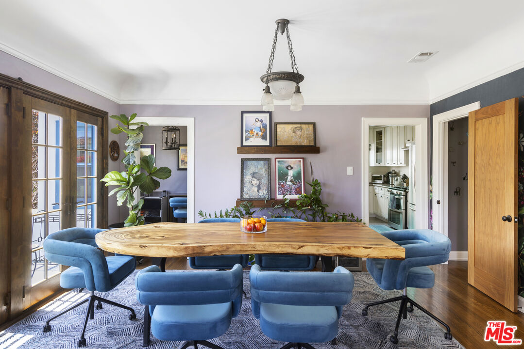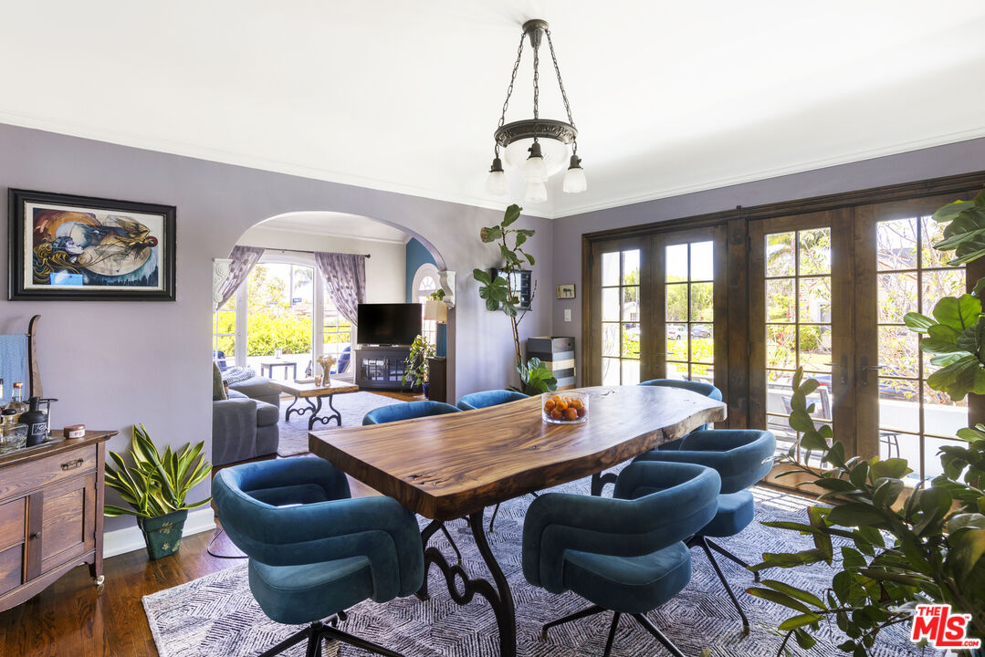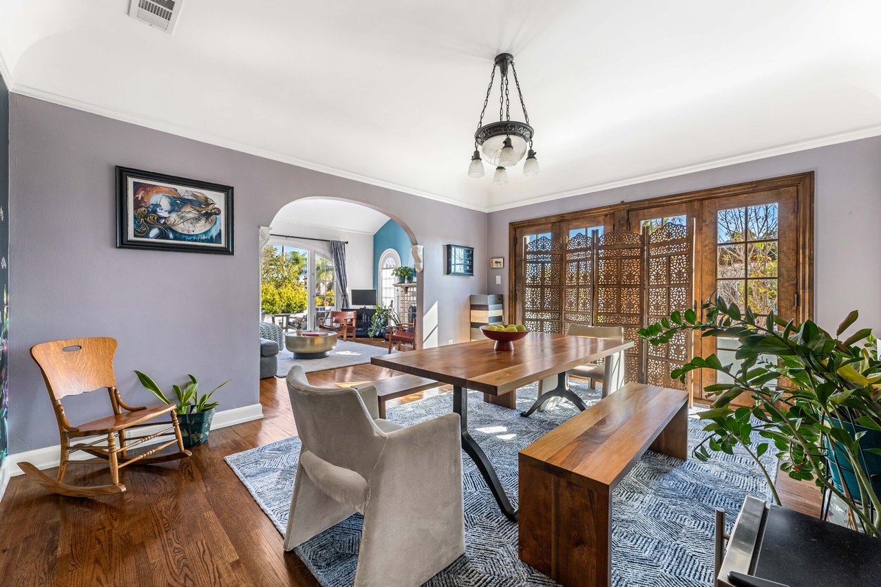 On a spacious corner lot, your dream opportunity in highly desired Picfair Village has arrived. A duplex with a single-family home of 3 bedrooms + office and 1.5 bath plus a luxe 1 bedroom/1 bath apartment over the 3-car garage. Enjoy the glory of this stellar updated Spanish home. The front corner lot has been designed with California drought tolerant ornamentals and a fruit and vegetable garden that include yuzu, navel oranges, cherry trees, nectaplum, guava, peach, lime, Meyer lemon, tangelo and Valencia oranges. Through the front door you are met with soaring 11 ft ceilings and a wood burning Batchelder fireplace flanked by French and Palladian windows. Hardwood floors and period details are found throughout. Off the living room is a stunning patio to sip your morning cup. The generously sized formal dining room features a mint condition glass chandelier from the 1920's and French doors that open up to a south facing patio, providing spectacular natural light. Perfect for entertaining. The main house features three generously sized bedrooms sharing a main bathroom with period tile. The dazzling kitchen with clay tile, built-ins and stainless-steel appliances, is large enough for any cook to hone their inner chef. Off the kitchen is a breakfast room currently being used as an office. Lastly there is a huge laundry room and statement powder room with dreamy wall paper. The vision of the home is to bring the outside in and every side of this home features a private outdoor area that supports entertaining. The guest unit/apartment is as charming as the front house, with many period details included. The house has a 3-car garage with three separate bays, one including an EV charger. Ideally located near Miracle Mile's Museum Row, Culver City (Sony, Apple, Amazon and more) and Cedars-Sinai, Picfair Village has a strong community vibe and is minutes from several local cafes and coffee shops. A rare opportunity to own a soulful, sophisticated home that embodies the architectural richness and spirit of old Los Angeles with all the comforts of today. Edibles in the opulent garden include: blueberry, raspberry, strawberry, rosemary, sage, thyme, oregano, culinary lavender. Other upgrades include: premium energy efficient windows, EV charger, earthquake retrofitted, central HVAC in both units, chimney has been completely rebuilt. Come and make this your Shangri-La in the heart of Mid-City! Attention investors and developers, this is a prime location in a desirable neighborhood, and is a great opportunity to develop a 4-story, 15-unit apartment building due to the (Q)R3-1-0 zoning. Development may be by right (buyer to verify).