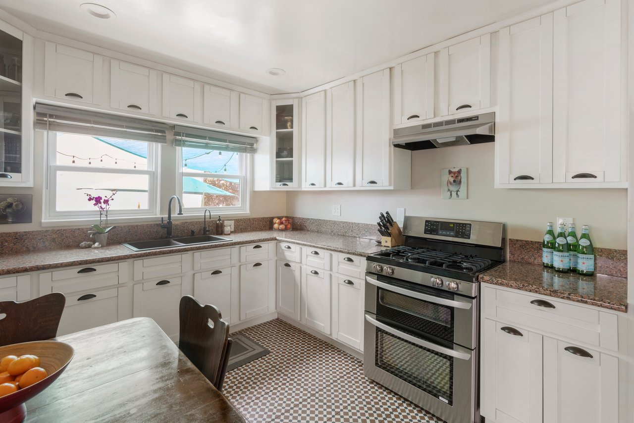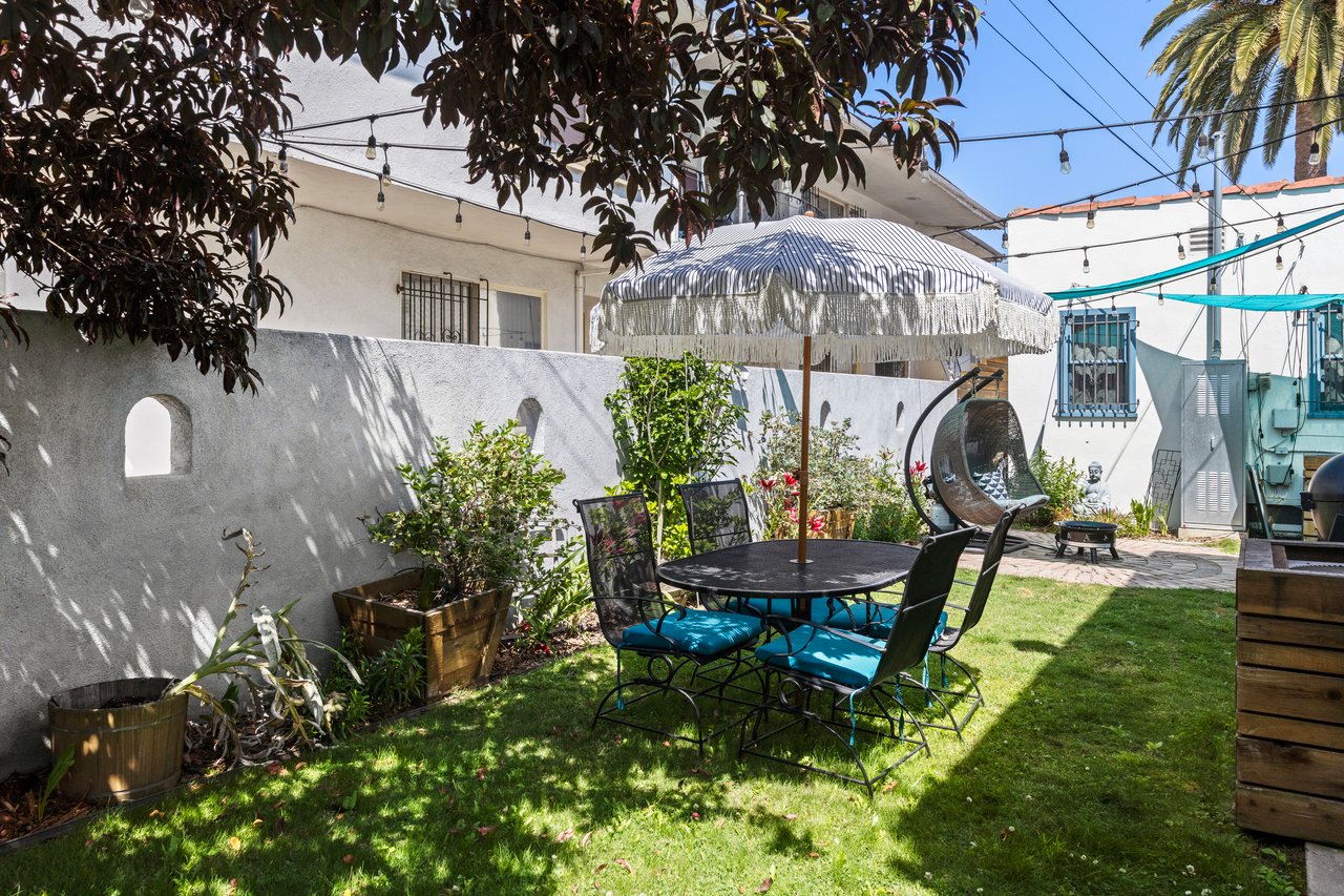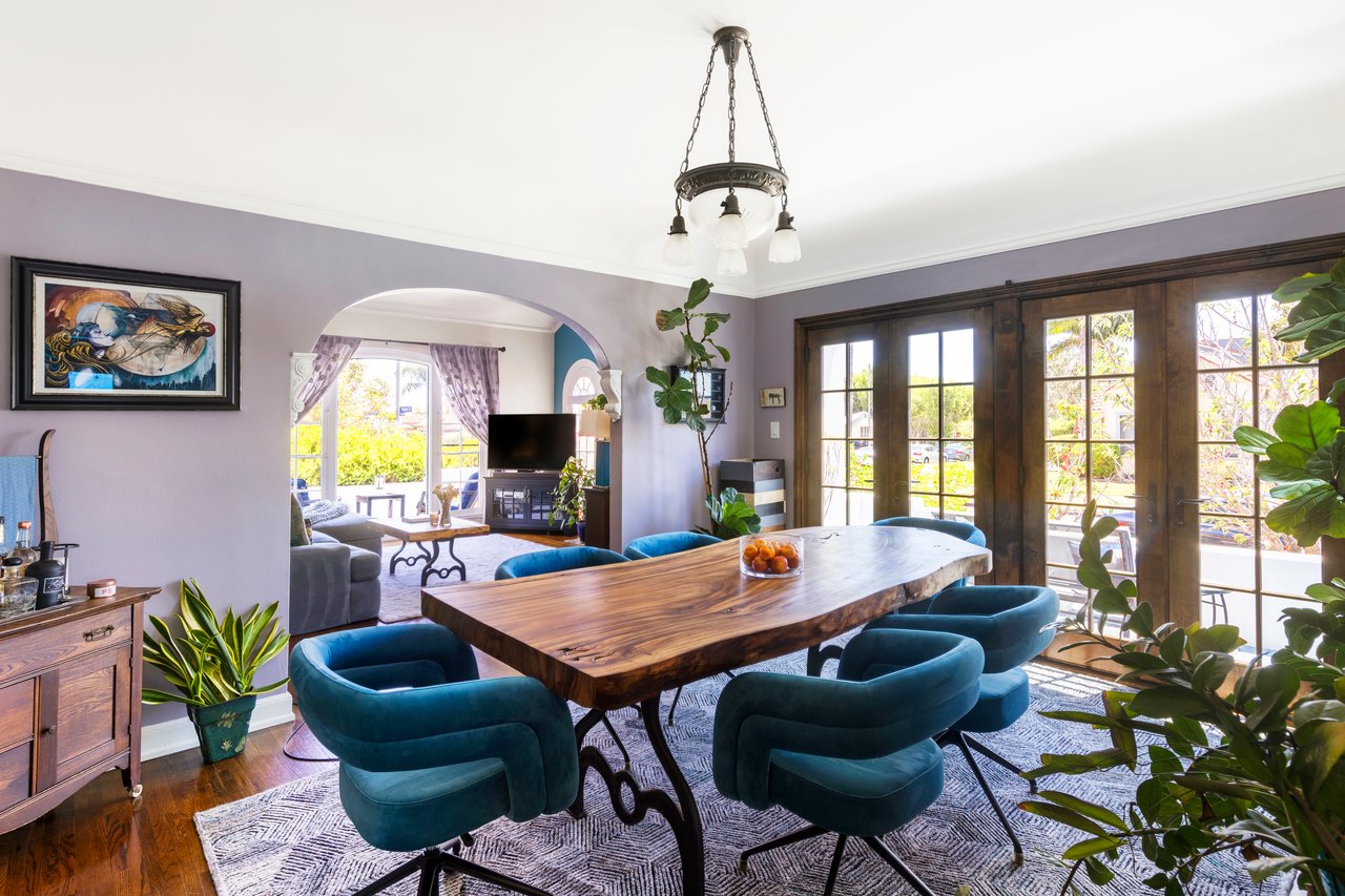 On a spacious corner lot, your dream opportunity in highly desired Picfair Village has arrived. A duplex with a single-family home of 3 bedrooms + office and 1.5 bath plus a luxe 1 bedroom/1 bath apartment over the 3-car garage. Enjoy the glory of this stellar updated Spanish home. The front corner lot has been designed with California drought tolerant ornamentals and a fruit and vegetable garden that include yuzu, navel oranges, cherry trees, nectaplum, guava, peach, lime, Meyer lemon, tangelo and Valencia oranges. Through the front door you are met with soaring 11 ft ceilings and a wood burning Batchelder fireplace flanked by French and Palladian windows. Hardwood floors and period details are found throughout. Off the living room is a stunning patio to sip your morning cup. The generously sized formal dining room features a mint condition glass chandelier from the 1920's and French doors that open up to a south facing patio, providing spectacular natural light. Perfect for entertaining. The main house features three generously sized bedrooms sharing a main bathroom with period tile. The dazzling kitchen with clay tile, built-ins and stainless-steel appliances, is large enough for any cook to hone their inner chef. Off the kitchen is a breakfast room currently being used as an office. Lastly there is a huge laundry room and statement powder room with dreamy wall paper. The vision of the home is to bring the outside in and every side of this home features a private outdoor area that supports entertaining. The guest unit/apartment is as charming as the front house, with many period details included. The house has a 3-car garage with three separate bays, one including an EV charger. Ideally located near Miracle Mile's Museum Row, Culver City (Sony, Apple, Amazon and more) and Cedars-Sinai, Picfair Village has a strong community vibe and is minutes from several local cafes and coffee shops. A rare opportunity to own a soulful, sophisticated home that embodies the architectural richness and spirit of old Los Angeles with all the comforts of today. Edibles in the opulent garden include: blueberry, raspberry, strawberry, rosemary, sage, thyme, oregano, culinary lavender. Other upgrades include: premium energy efficient windows, EV charger, earthquake retrofitted, central HVAC in both units, chimney has been completely rebuilt. Come and make this your Shangri-La in the heart of Mid-City! Attention investors and developers, this is a prime location in a desirable neighborhood, and is a great opportunity to develop a 4-story, 15-unit apartment building due to the (Q)R3-1-0 zoning. Development may be by right (buyer to verify).