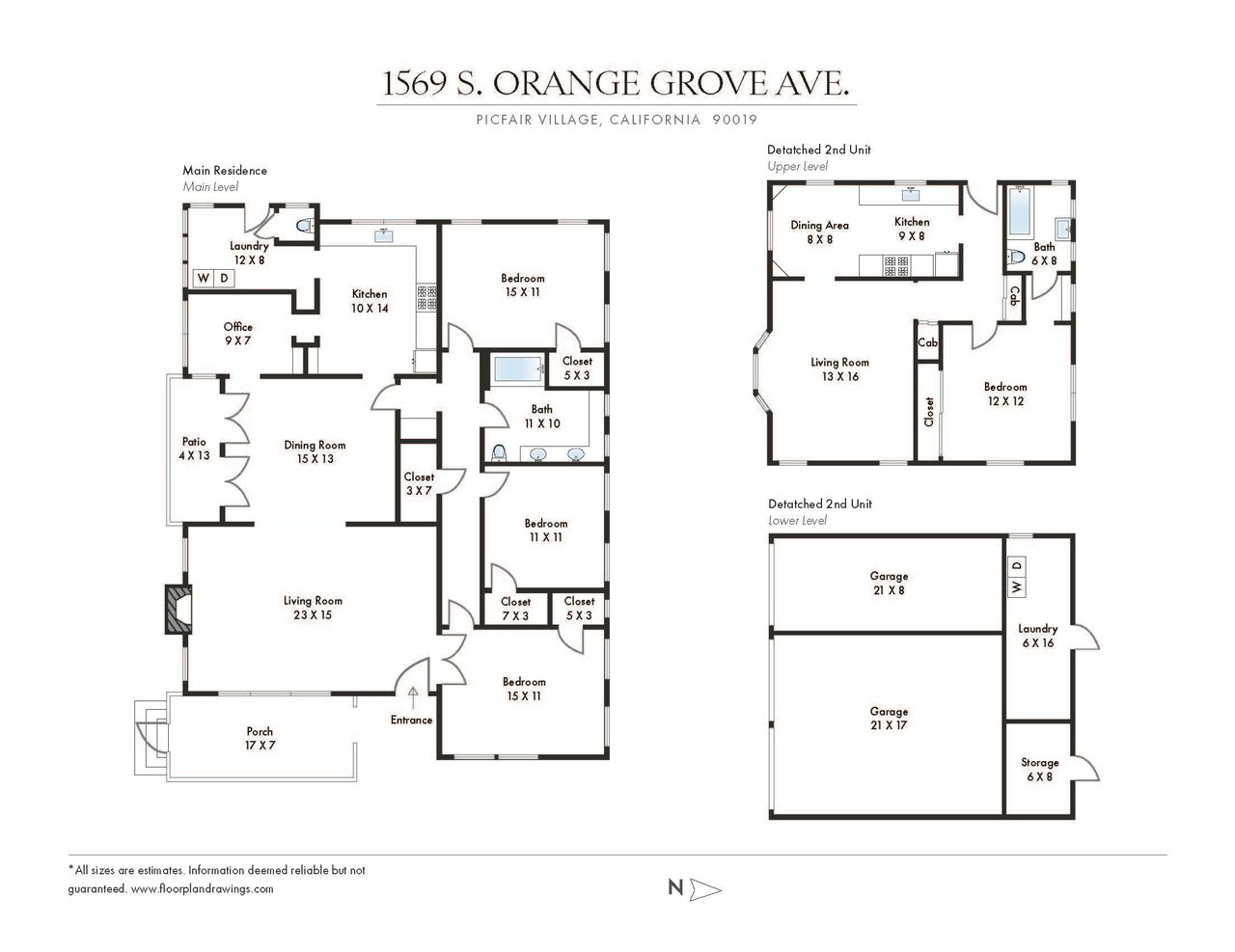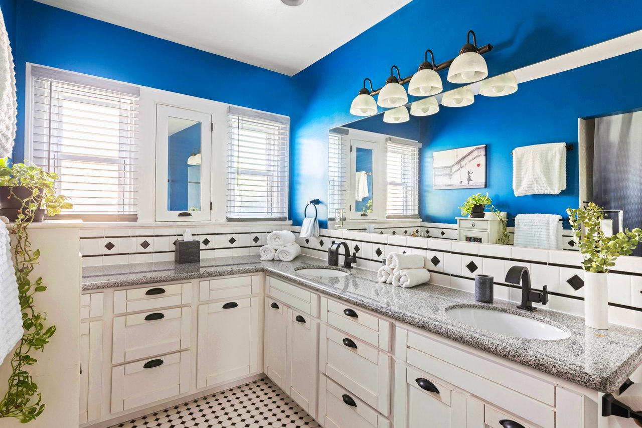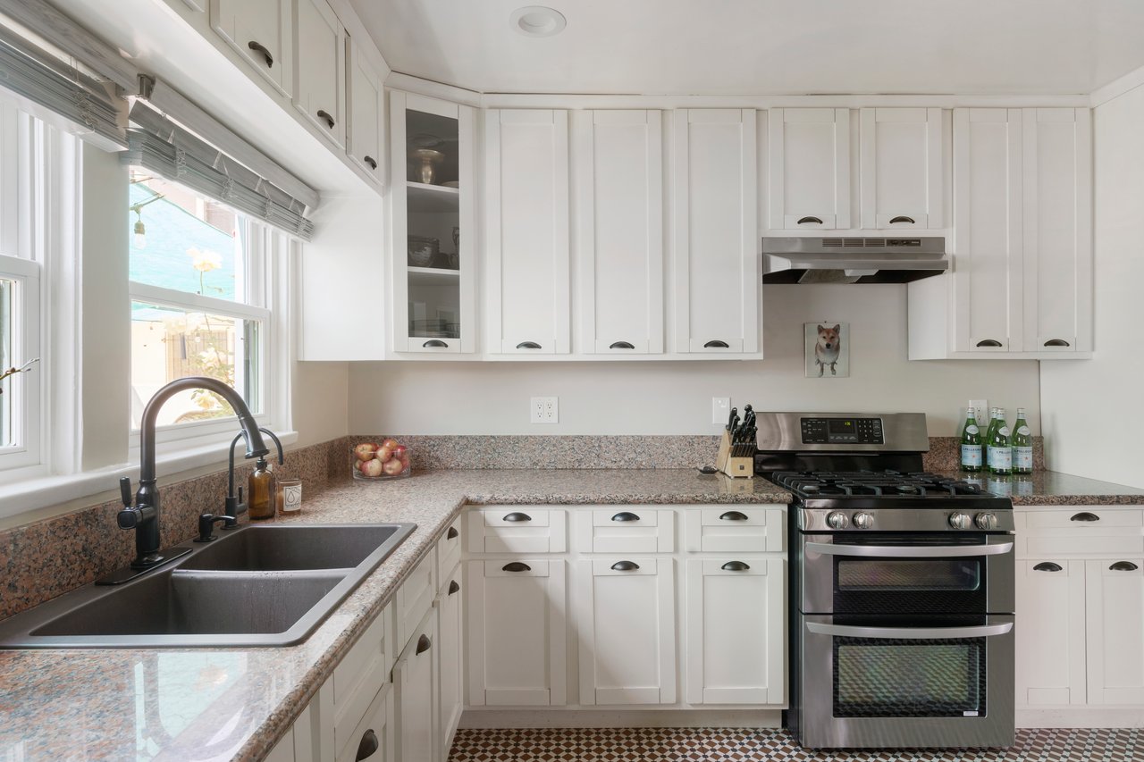 On a spacious corner lot, your dream opportunity in highly desired Picfair Village has arrived. A duplex with a single-family home of 3 bedrooms + office and 1.5 bath plus a luxe 1 bedroom/1 bath apartment over the 3-car garage. Enjoy the glory of this stellar updated Spanish home. The front corner lot has been designed with California drought tolerant ornamentals and a fruit and vegetable garden that include yuzu, navel oranges, cherry trees, nectaplum, guava, peach, lime, Meyer lemon, tangelo and Valencia oranges. Through the front door you are met with soaring 11 ft ceilings and a wood burning Batchelder fireplace flanked by French and Palladian windows. Hardwood floors and period details are found throughout. Off the living room is a stunning patio to sip your morning cup. The generously sized formal dining room features a mint condition glass chandelier from the 1920's and French doors that open up to a south facing patio, providing spectacular natural light. Perfect for entertaining. The main house features three generously sized bedrooms sharing a main bathroom with period tile. The dazzling kitchen with clay tile, built-ins and stainless-steel appliances, is large enough for any cook to hone their inner chef. Off the kitchen is a breakfast room currently being used as an office. Lastly there is a huge laundry room and statement powder room with dreamy wall paper. The vision of the home is to bring the outside in and every side of this home features a private outdoor area that supports entertaining. The guest unit/apartment is as charming as the front house, with many period details included. The house has a 3-car garage with three separate bays, one including an EV charger. Ideally located near Miracle Mile's Museum Row, Culver City (Sony, Apple, Amazon and more) and Cedars-Sinai, Picfair Village has a strong community vibe and is minutes from several local cafes and coffee shops. A rare opportunity to own a soulful, sophisticated home that embodies the architectural richness and spirit of old Los Angeles with all the comforts of today. Edibles in the opulent garden include: blueberry, raspberry, strawberry, rosemary, sage, thyme, oregano, culinary lavender. Other upgrades include: premium energy efficient windows, EV charger, earthquake retrofitted, central HVAC in both units, chimney has been completely rebuilt. Come and make this your Shangri-La in the heart of Mid-City! Attention investors and developers, this is a prime location in a desirable neighborhood, and is a great opportunity to develop a 4-story, 15-unit apartment building due to the (Q)R3-1-0 zoning. Development may be by right (buyer to verify).