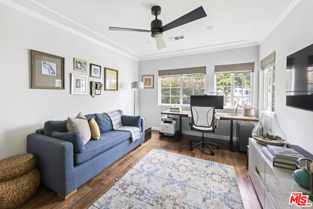 This stunning & updated traditional home is located in Picfair Village. Sophisticated elegance-this home features hardwood floors, fireplace, recessed lighting, electric gate, security system, central air, tankless water heater, formal dining room with Jonathan Adler chandelier & living room with open plan. The updated kitchen features stainless steel appliances, newer cabinetry, quartz counters and a cozy breakfast nook-perfect for a morning coffee. The primary bedroom with spacious walk-in closet features ensuite bathroom & sliding doors that lead you to a large deck and lushly landscaped backyard, perfect for outdoor entertaining. There are 2 additional bedrooms, one with its own ensuite bathroom and double closets and the other larger front bedroom (featured as an office in the photos) has a shared hall bathroom for guests. Top-down natural shades in every room and motorized roller shades in primary suite. Enjoy what we think is one of LA's best neighborhoods in a central location. Picfair Village hosts an eclectic mix of events from Third Thursday strolls to grassroots gatherings mixed into a very walkable area. Brunch at the walkable cafes on nearby Pico Blvd while Culver City, WEHO and Beverly Hills are under 10 minutes away. Not to mention only 20 minutes to LAX. Welcome to Picfair Village!