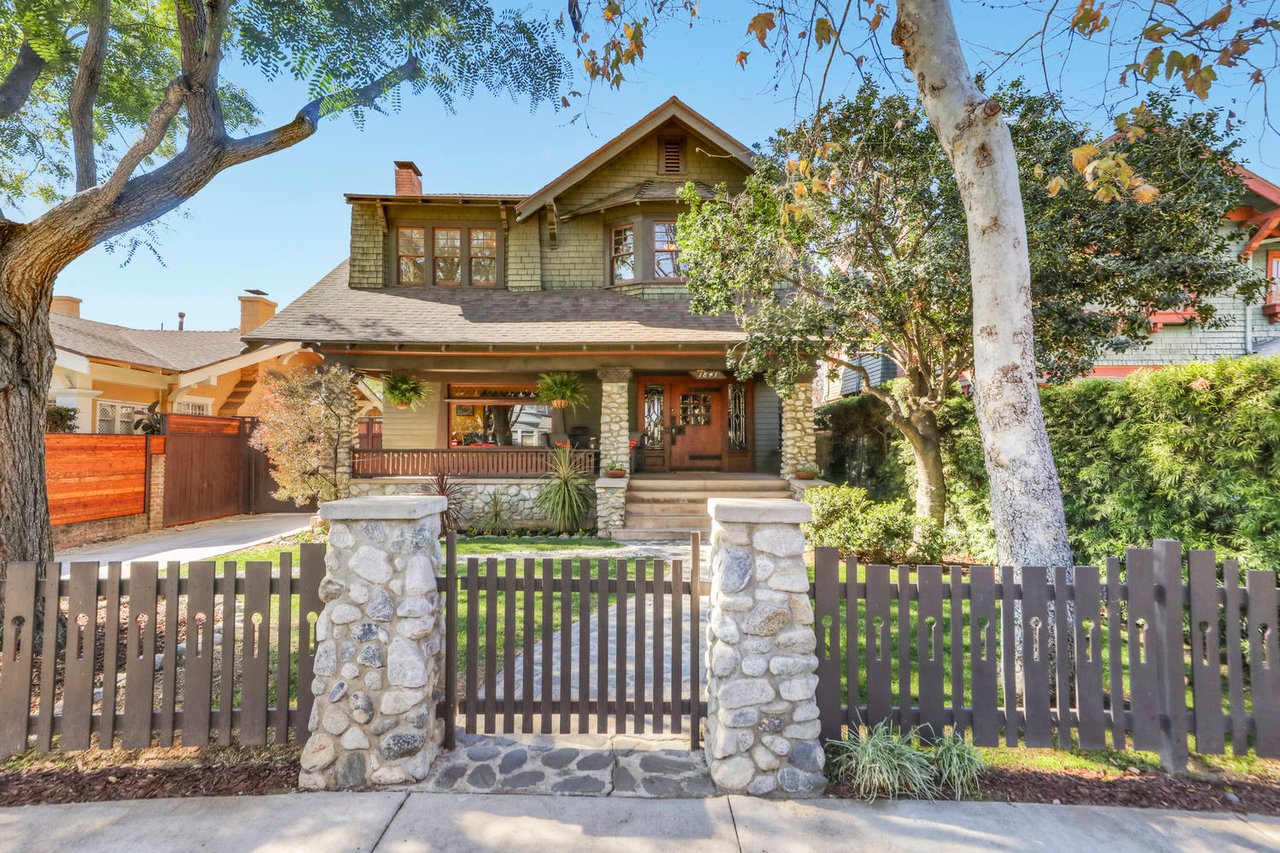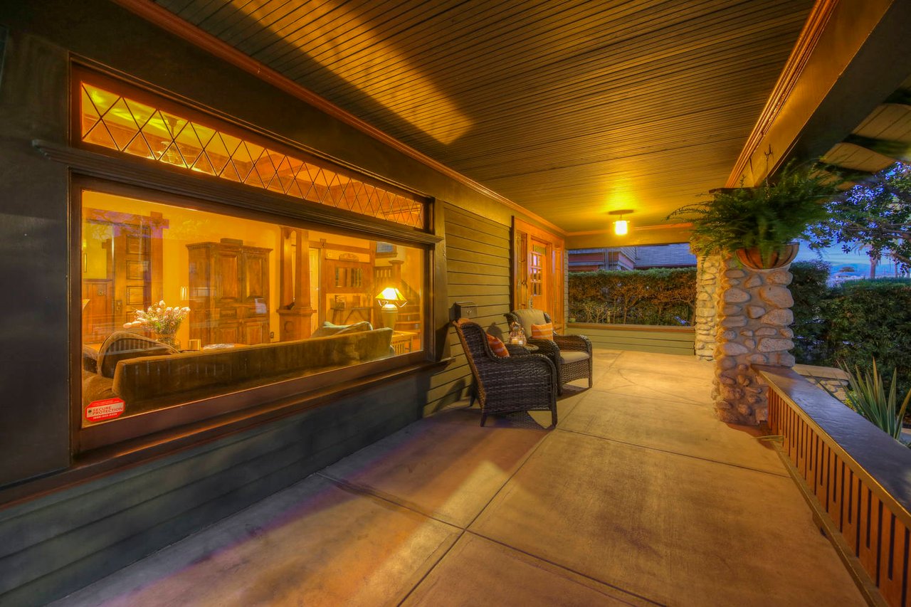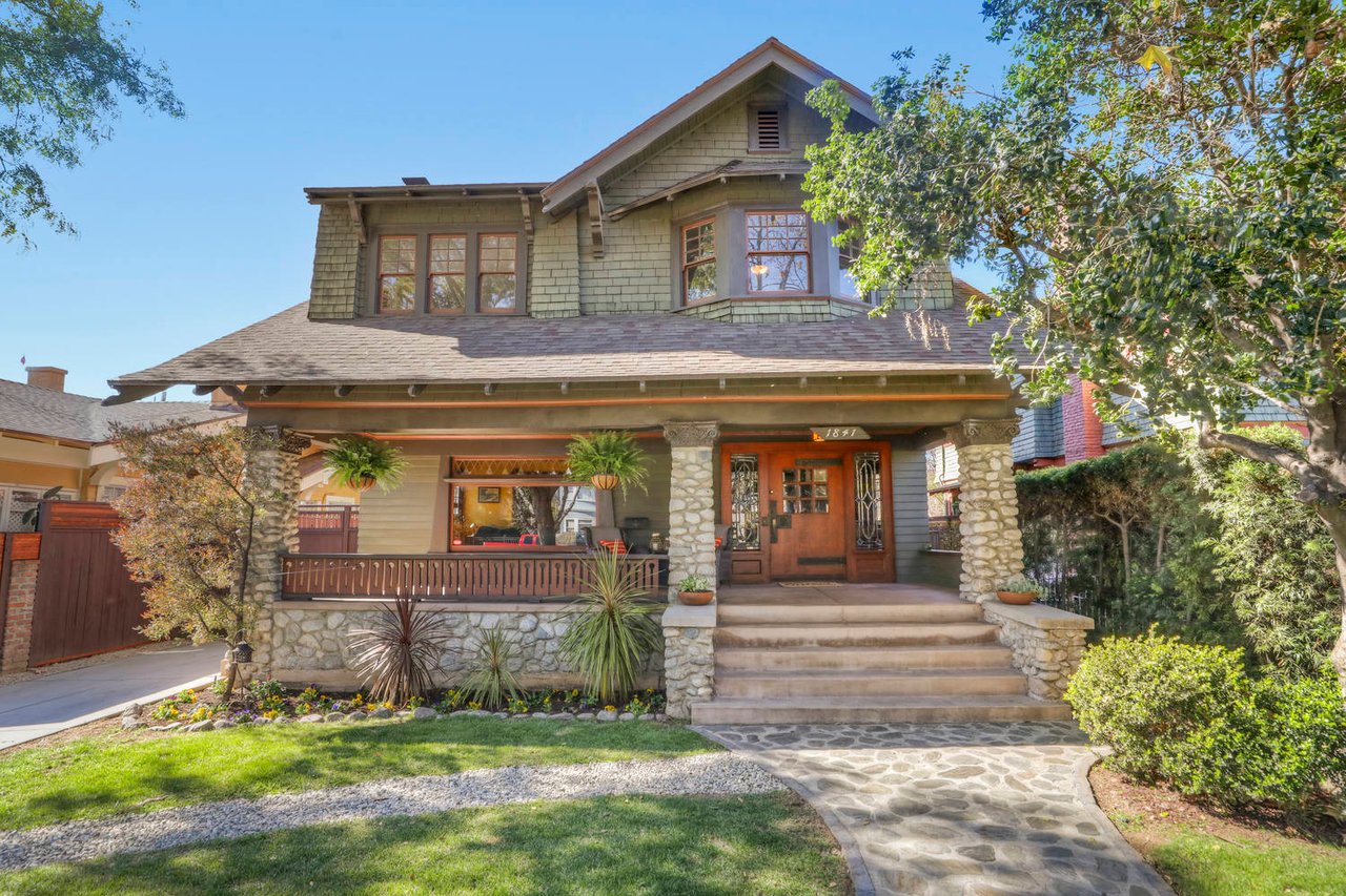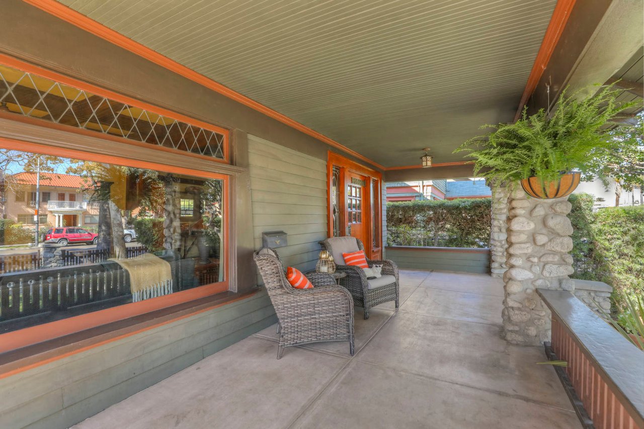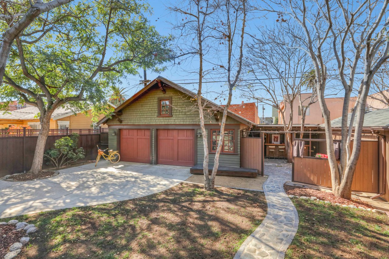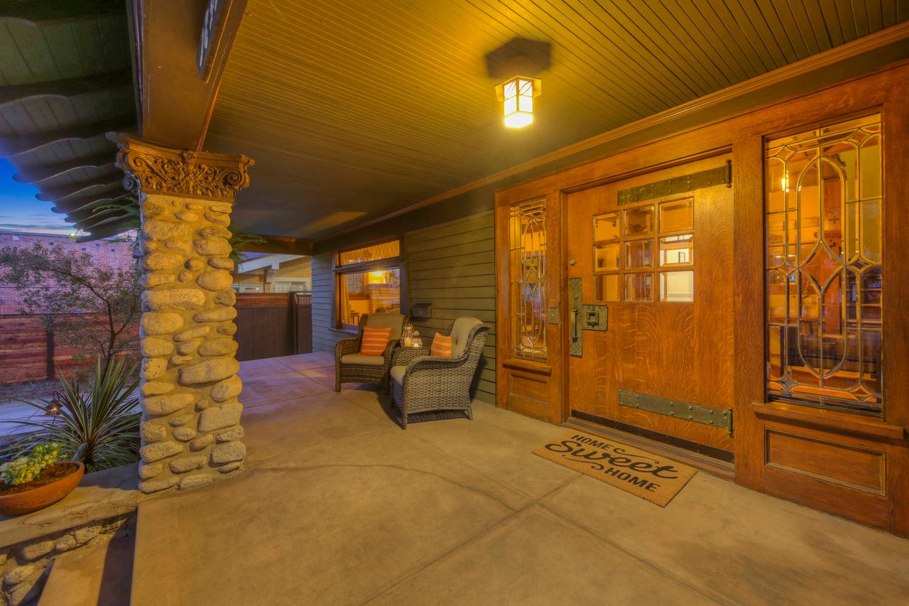 Welcome to the Ives House by noted Historic West Adams architect Frank Milton Tyler. An exemplary example of Arts & Crafts architecture at its finest. A true trophy property. Along with being a starring attraction on the Angelus Vista Home Tour, it has been on camera so much it should have its own IMDB page. Enter past the keyhole picket fencing and you will find privacy in the city. An arroyo stone columned front porch with Corinthian capitals beckons you to the generous 232 sq ft front porch. Through the massive Tiger Oak front door with original hammered hardware you enter the foyer and public rooms with numerous original period details such as leaded glass, bow and bay windows, pocket doors, built-in bookcase, lighting, box beam ceilings and period stained wood work such as picture and plate rails. Upstairs there are 4 generous bedrooms, one with a west-facing balcony to enjoy your sunsets, that share a stunning main bath with period tile and clawfoot tub. The large walk-in basement and accessible attic could allow for future expansion. Off to the recording studio of 560 sq ft. An A+ facility built by Peter Grueneisen of Studio Bau:ton, it includes a state of the art isolation booth and sound lock. When you are done recording step out to the incredible outdoor area with bar and TV to celebrate! Live. Work. Play. Welcome to paradise in the city.
