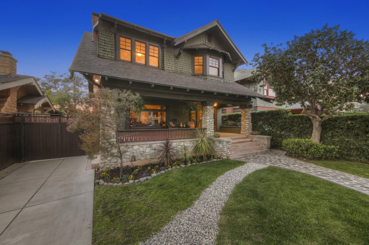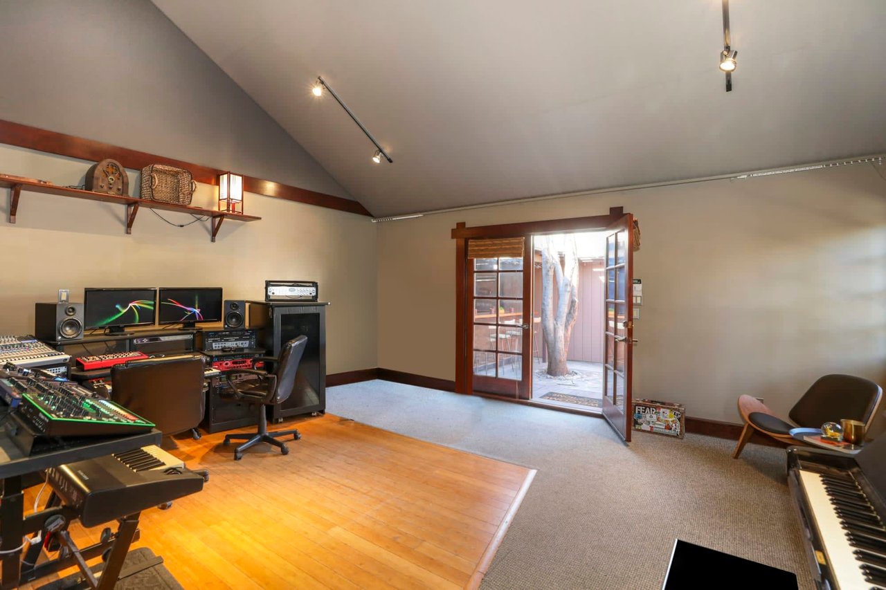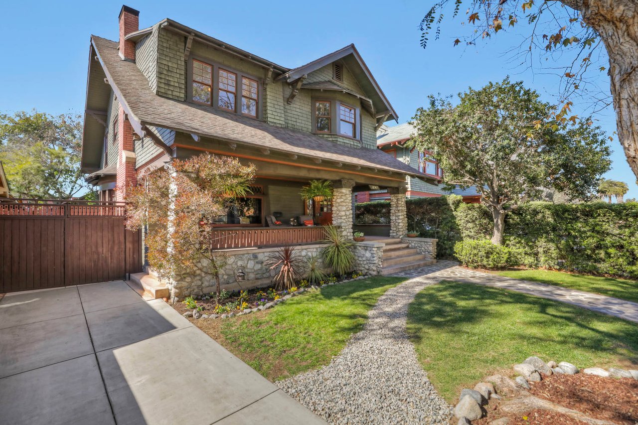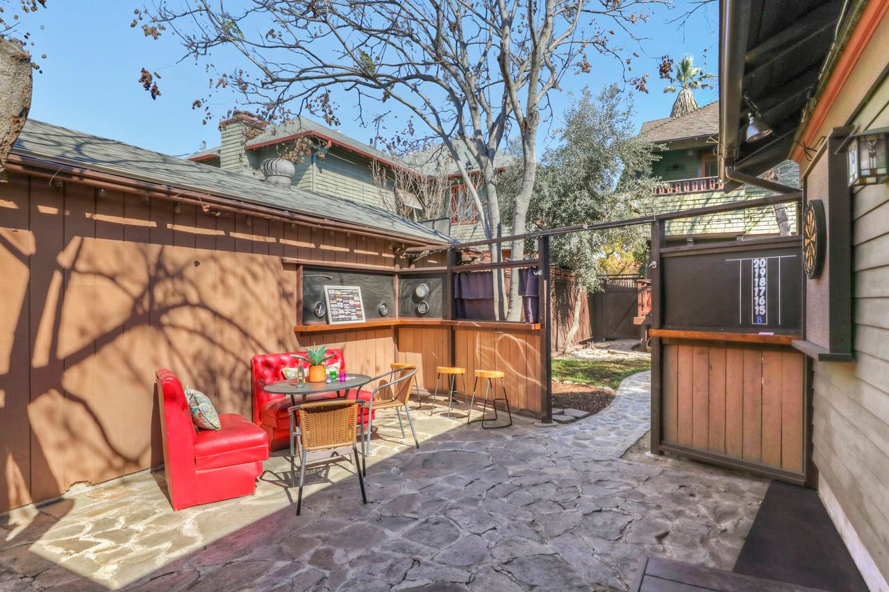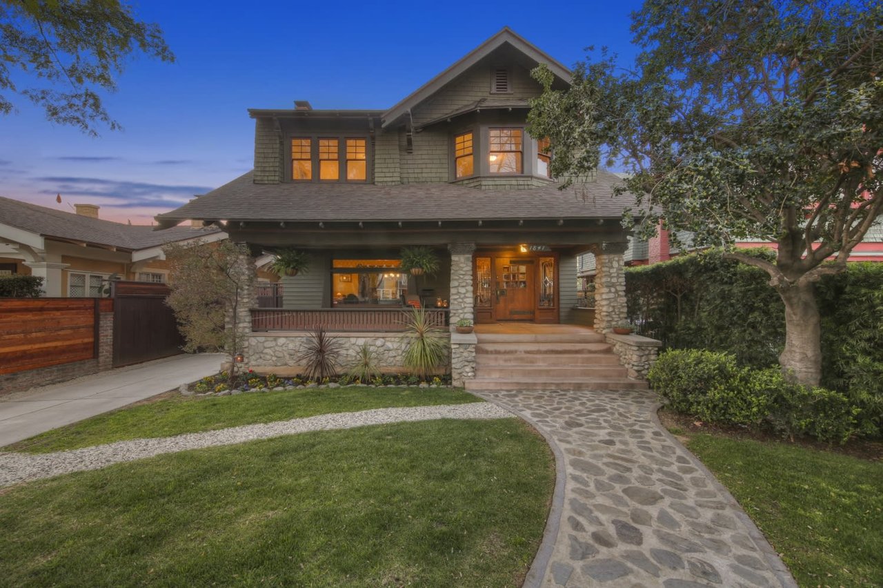 Welcome to the Ives House by noted Historic West Adams architect Frank Milton Tyler. An exemplary example of Arts & Crafts architecture at its finest. A true trophy property. Along with being a starring attraction on the Angelus Vista Home Tour, it has been on camera so much it should have its own IMDB page. Enter past the keyhole picket fencing and you will find privacy in the city. An arroyo stone columned front porch with Corinthian capitals beckons you to the generous 232 sq ft front porch. Through the massive Tiger Oak front door with original hammered hardware you enter the foyer and public rooms with numerous original period details such as leaded glass, bow and bay windows, pocket doors, built-in bookcase, lighting, box beam ceilings and period stained wood work such as picture and plate rails. Upstairs there are 4 generous bedrooms, one with a west-facing balcony to enjoy your sunsets, that share a stunning main bath with period tile and clawfoot tub. The large walk-in basement and accessible attic could allow for future expansion. Off to the recording studio of 560 sq ft. An A+ facility built by Peter Grueneisen of Studio Bau:ton, it includes a state of the art isolation booth and sound lock. When you are done recording step out to the incredible outdoor area with bar and TV to celebrate! Live. Work. Play. Welcome to paradise in the city.