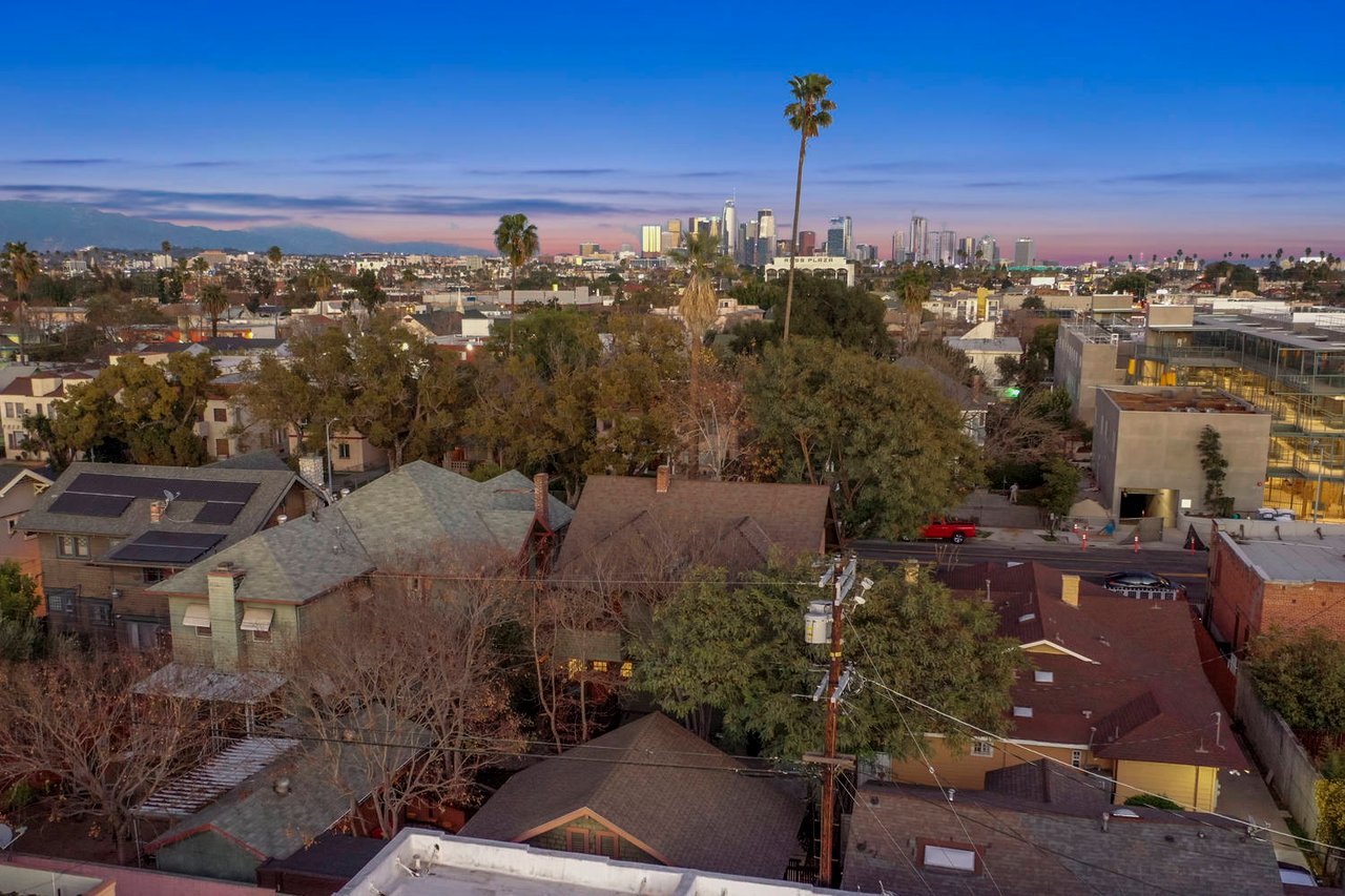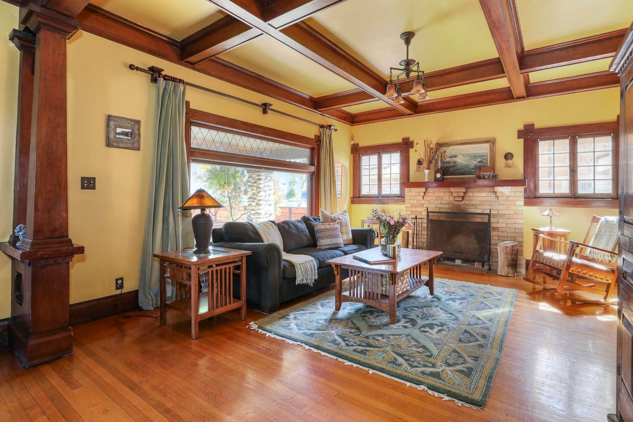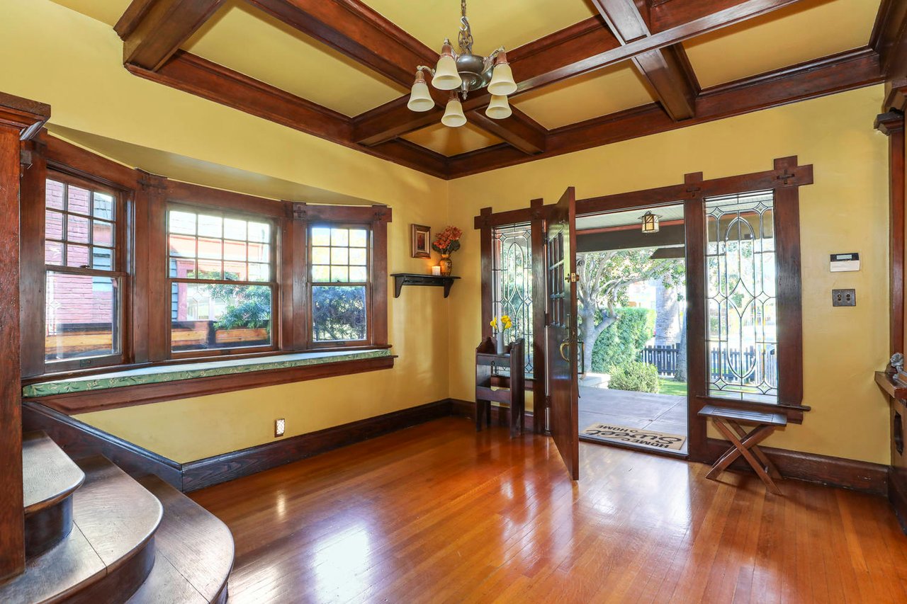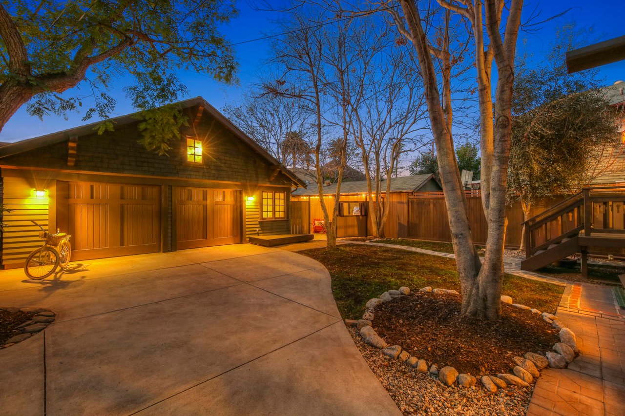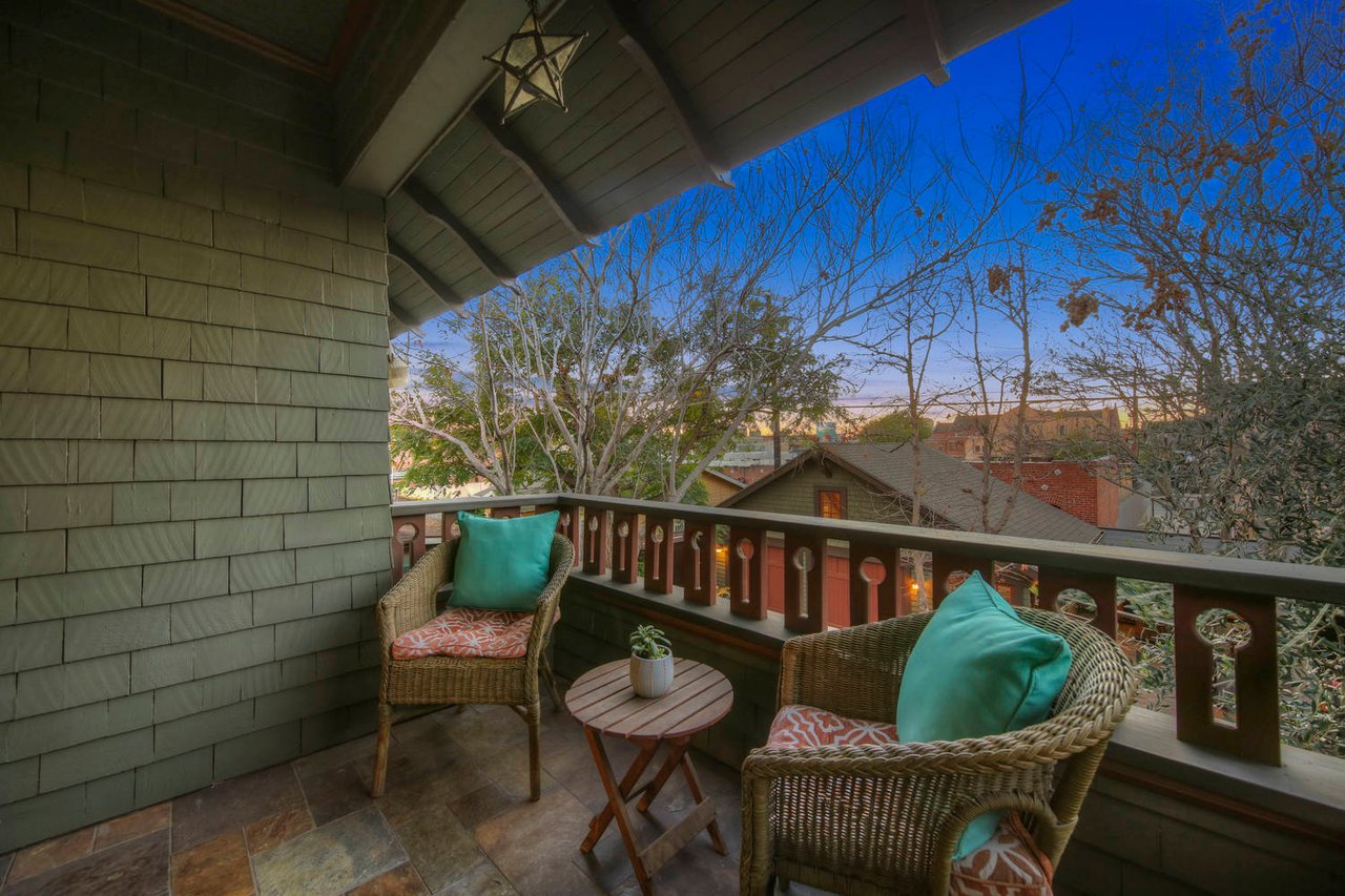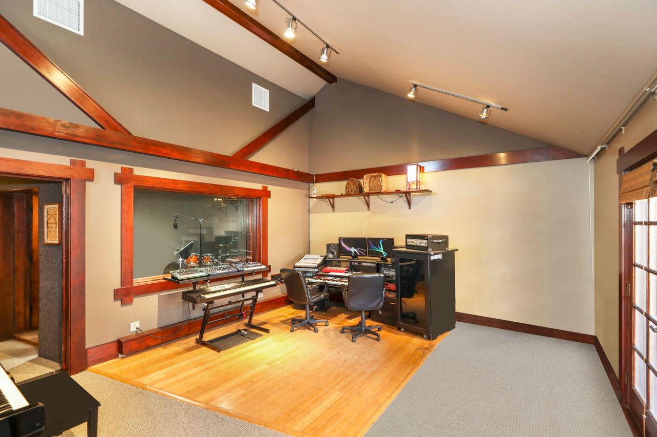 Welcome to the Ives House by noted Historic West Adams architect Frank Milton Tyler. An exemplary example of Arts & Crafts architecture at its finest. A true trophy property. Along with being a starring attraction on the Angelus Vista Home Tour, it has been on camera so much it should have its own IMDB page. Enter past the keyhole picket fencing and you will find privacy in the city. An arroyo stone columned front porch with Corinthian capitals beckons you to the generous 232 sq ft front porch. Through the massive Tiger Oak front door with original hammered hardware you enter the foyer and public rooms with numerous original period details such as leaded glass, bow and bay windows, pocket doors, built-in bookcase, lighting, box beam ceilings and period stained wood work such as picture and plate rails. Upstairs there are 4 generous bedrooms, one with a west-facing balcony to enjoy your sunsets, that share a stunning main bath with period tile and clawfoot tub. The large walk-in basement and accessible attic could allow for future expansion. Off to the recording studio of 560 sq ft. An A+ facility built by Peter Grueneisen of Studio Bau:ton, it includes a state of the art isolation booth and sound lock. When you are done recording step out to the incredible outdoor area with bar and TV to celebrate! Live. Work. Play. Welcome to paradise in the city.