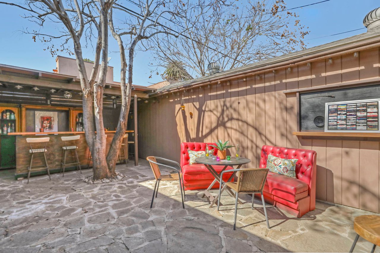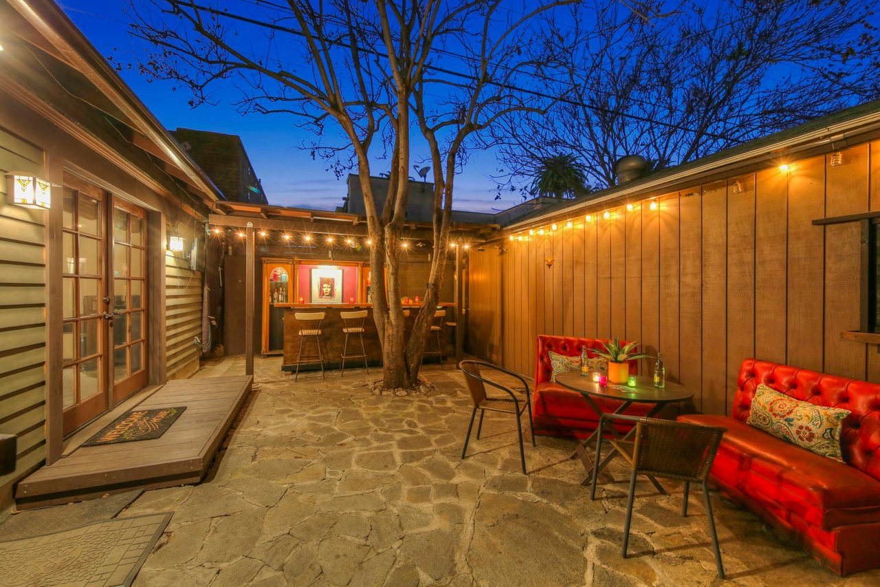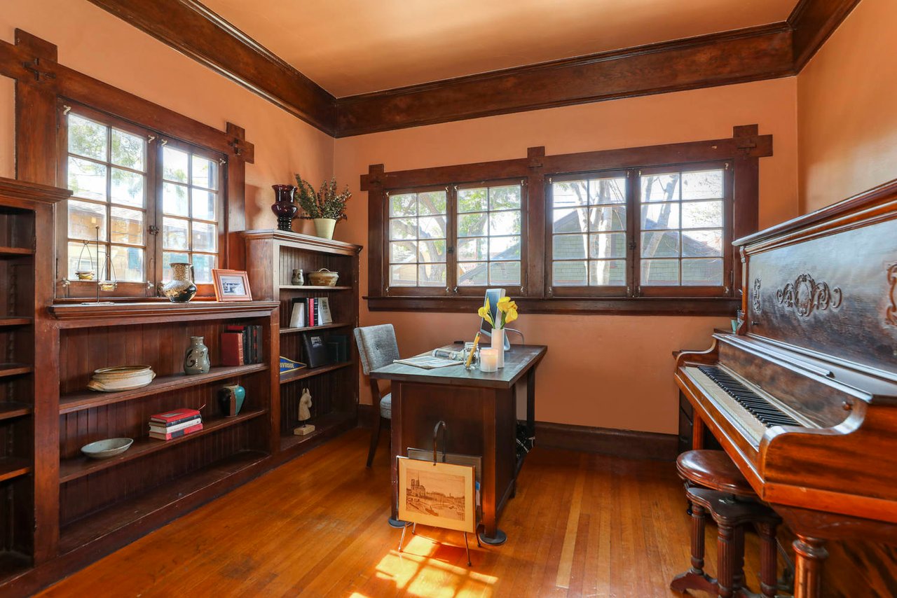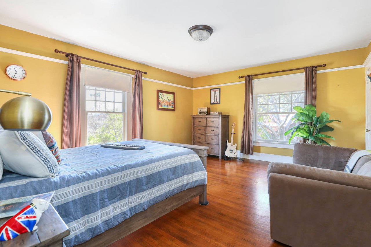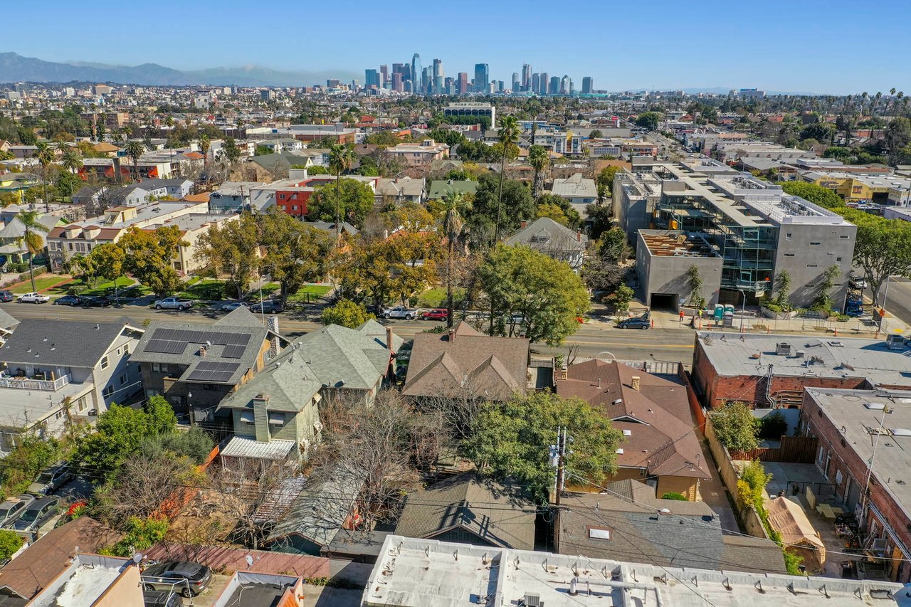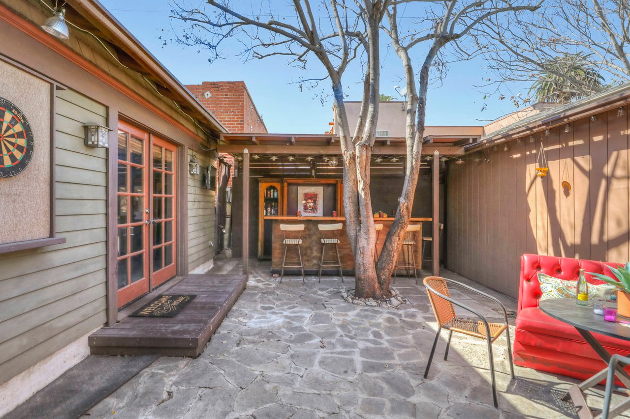 Welcome to the Ives House by noted Historic West Adams architect Frank Milton Tyler. An exemplary example of Arts & Crafts architecture at its finest. A true trophy property. Along with being a starring attraction on the Angelus Vista Home Tour, it has been on camera so much it should have its own IMDB page. Enter past the keyhole picket fencing and you will find privacy in the city. An arroyo stone columned front porch with Corinthian capitals beckons you to the generous 232 sq ft front porch. Through the massive Tiger Oak front door with original hammered hardware you enter the foyer and public rooms with numerous original period details such as leaded glass, bow and bay windows, pocket doors, built-in bookcase, lighting, box beam ceilings and period stained wood work such as picture and plate rails. Upstairs there are 4 generous bedrooms, one with a west-facing balcony to enjoy your sunsets, that share a stunning main bath with period tile and clawfoot tub. The large walk-in basement and accessible attic could allow for future expansion. Off to the recording studio of 560 sq ft. An A+ facility built by Peter Grueneisen of Studio Bau:ton, it includes a state of the art isolation booth and sound lock. When you are done recording step out to the incredible outdoor area with bar and TV to celebrate! Live. Work. Play. Welcome to paradise in the city.