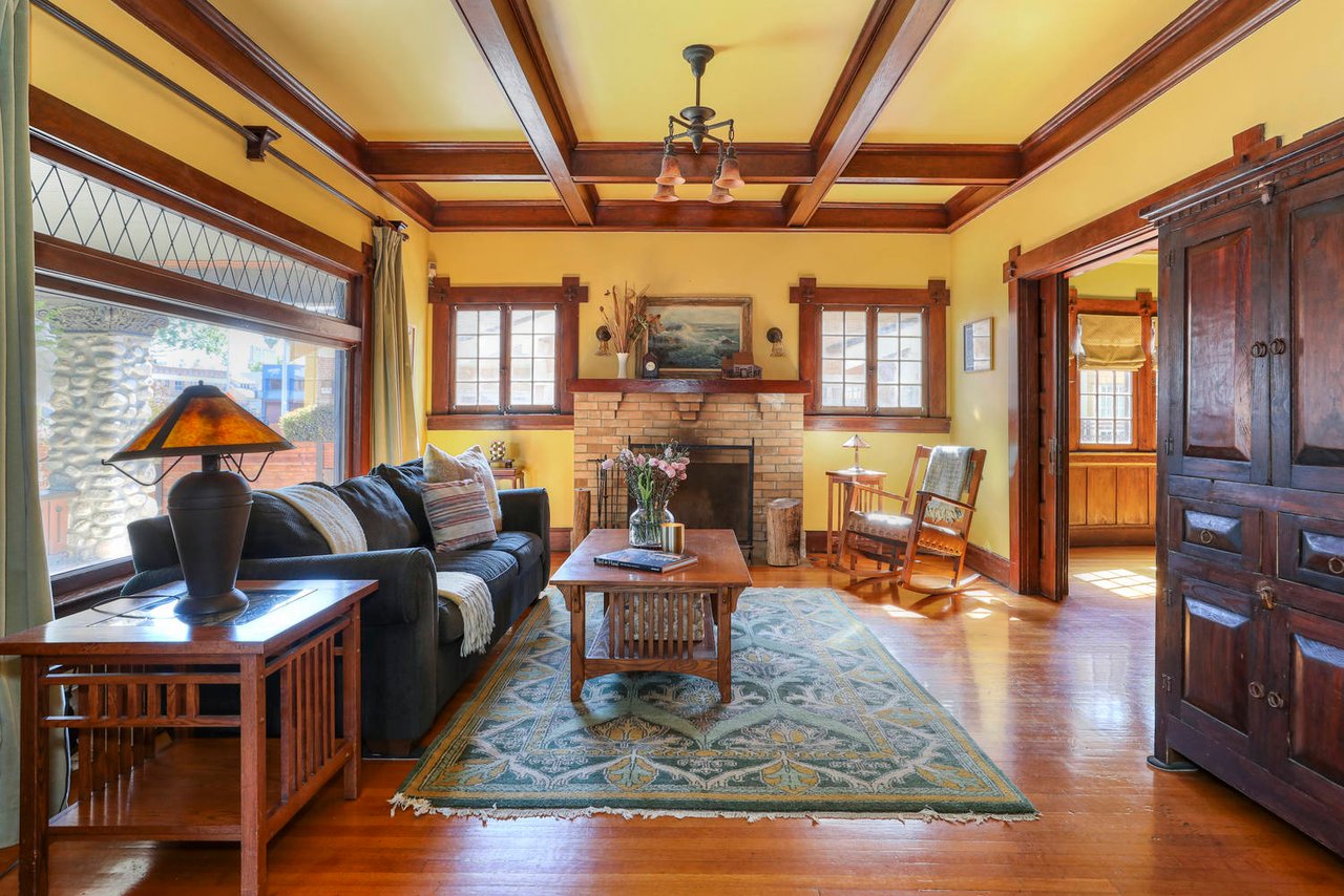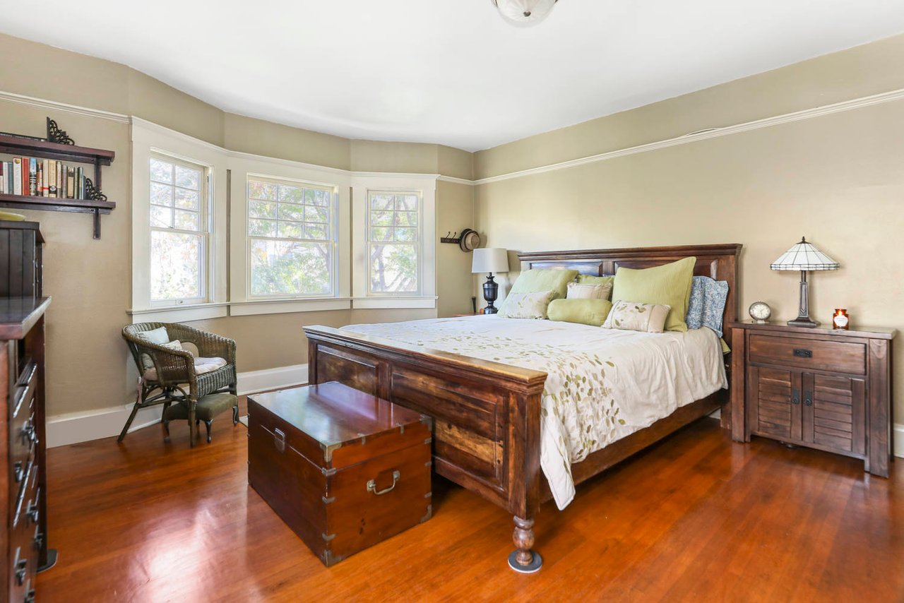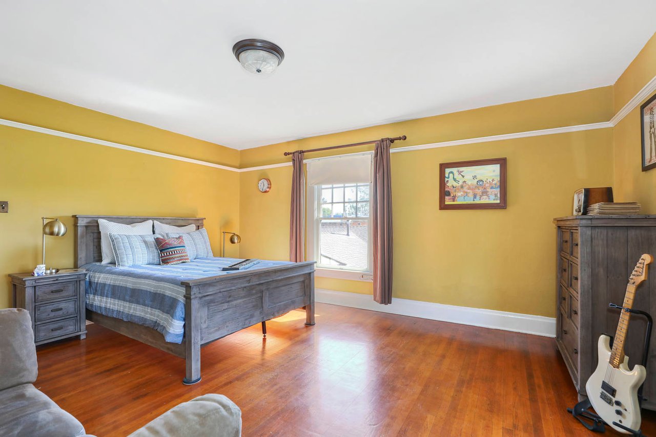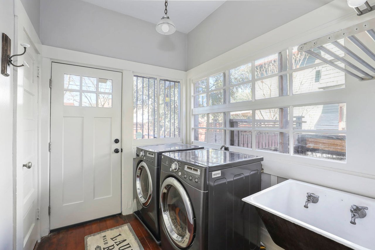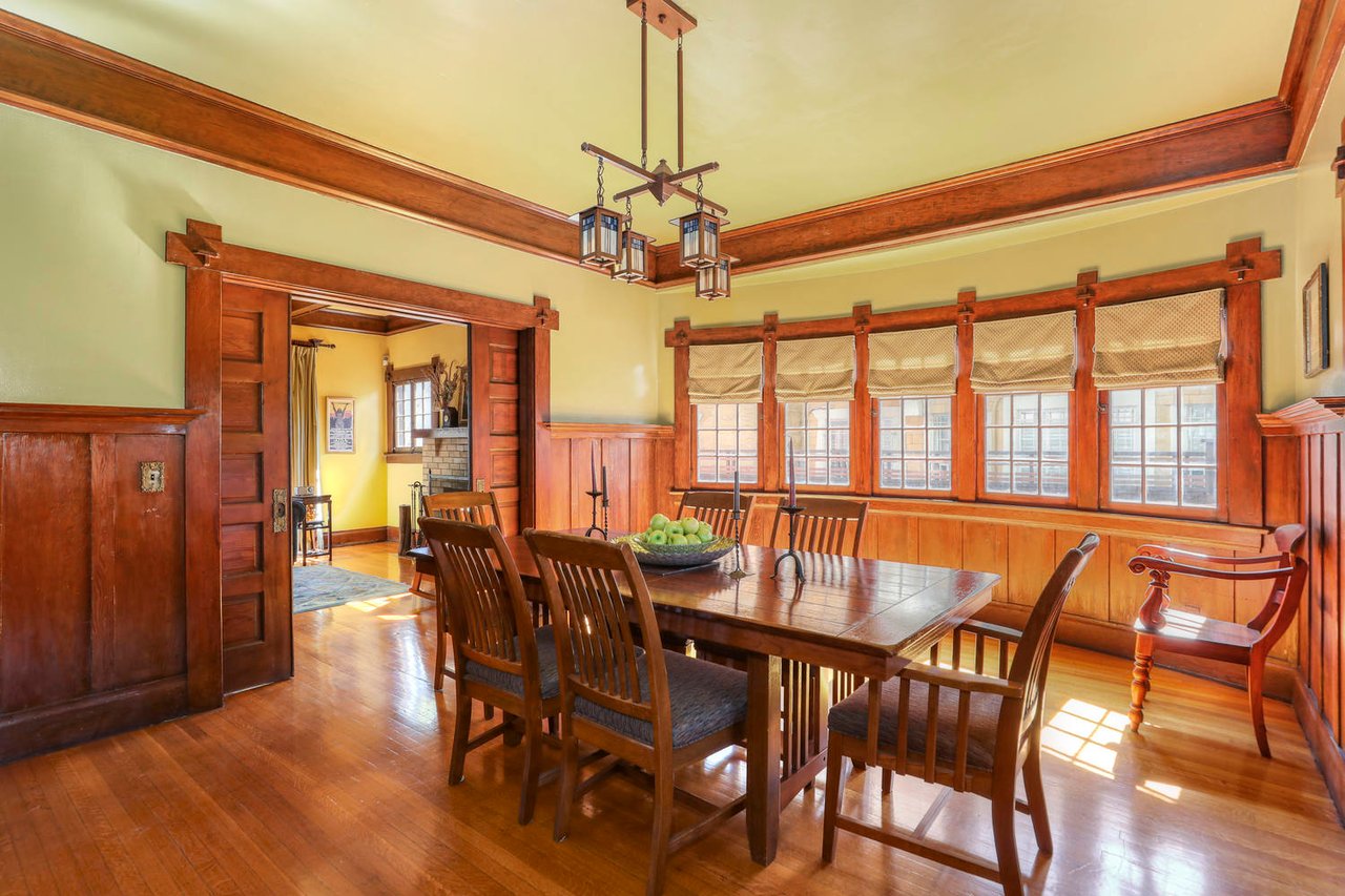 Welcome to the Ives House by noted Historic West Adams architect Frank Milton Tyler. An exemplary example of Arts & Crafts architecture at its finest. A true trophy property. Along with being a starring attraction on the Angelus Vista Home Tour, it has been on camera so much it should have its own IMDB page. Enter past the keyhole picket fencing and you will find privacy in the city. An arroyo stone columned front porch with Corinthian capitals beckons you to the generous 232 sq ft front porch. Through the massive Tiger Oak front door with original hammered hardware you enter the foyer and public rooms with numerous original period details such as leaded glass, bow and bay windows, pocket doors, built-in bookcase, lighting, box beam ceilings and period stained wood work such as picture and plate rails. Upstairs there are 4 generous bedrooms, one with a west-facing balcony to enjoy your sunsets, that share a stunning main bath with period tile and clawfoot tub. The large walk-in basement and accessible attic could allow for future expansion. Off to the recording studio of 560 sq ft. An A+ facility built by Peter Grueneisen of Studio Bau:ton, it includes a state of the art isolation booth and sound lock. When you are done recording step out to the incredible outdoor area with bar and TV to celebrate! Live. Work. Play. Welcome to paradise in the city.