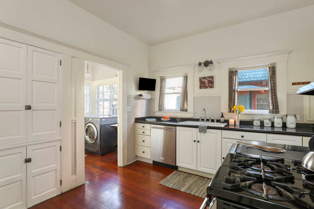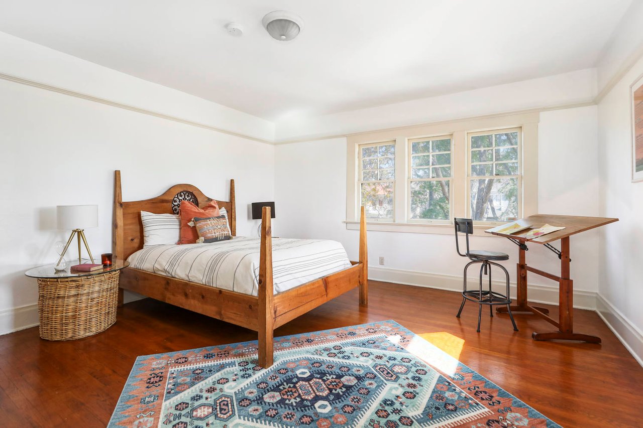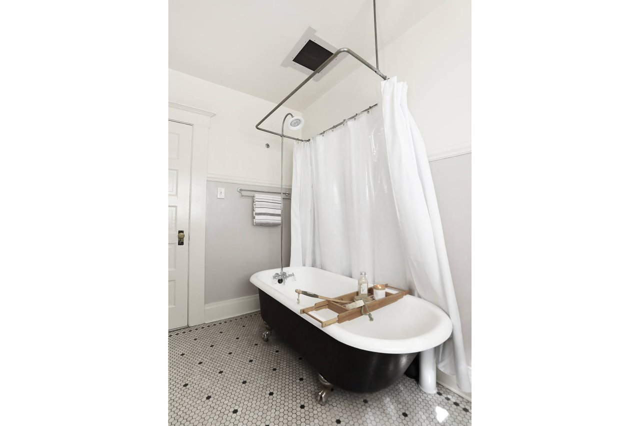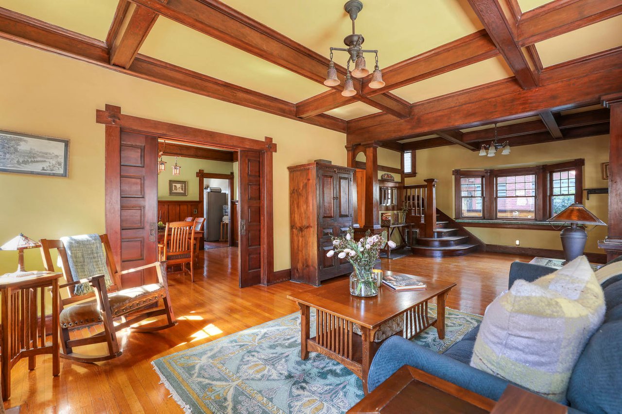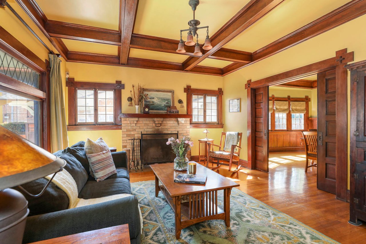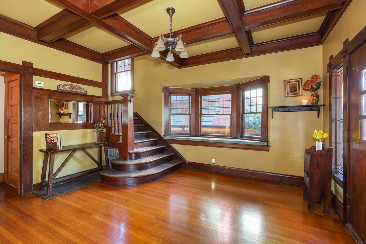 Welcome to the Ives House by noted Historic West Adams architect Frank Milton Tyler. An exemplary example of Arts & Crafts architecture at its finest. A true trophy property. Along with being a starring attraction on the Angelus Vista Home Tour, it has been on camera so much it should have its own IMDB page. Enter past the keyhole picket fencing and you will find privacy in the city. An arroyo stone columned front porch with Corinthian capitals beckons you to the generous 232 sq ft front porch. Through the massive Tiger Oak front door with original hammered hardware you enter the foyer and public rooms with numerous original period details such as leaded glass, bow and bay windows, pocket doors, built-in bookcase, lighting, box beam ceilings and period stained wood work such as picture and plate rails. Upstairs there are 4 generous bedrooms, one with a west-facing balcony to enjoy your sunsets, that share a stunning main bath with period tile and clawfoot tub. The large walk-in basement and accessible attic could allow for future expansion. Off to the recording studio of 560 sq ft. An A+ facility built by Peter Grueneisen of Studio Bau:ton, it includes a state of the art isolation booth and sound lock. When you are done recording step out to the incredible outdoor area with bar and TV to celebrate! Live. Work. Play. Welcome to paradise in the city.