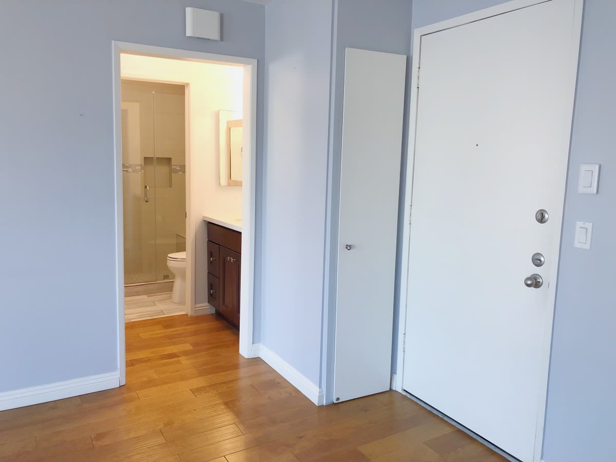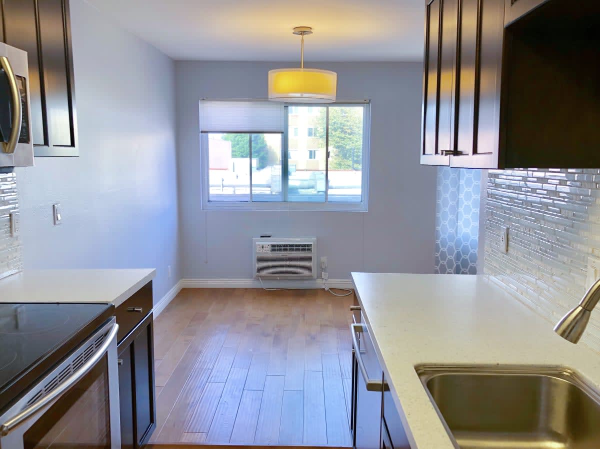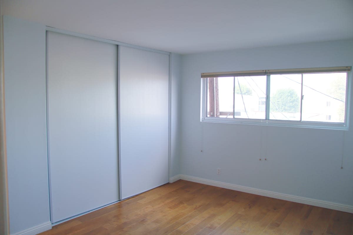 This 1 bed/1 bath large remodeled condo is perfect with 622 square feet and bathed in light. Third floor corner unit west facing with views of the Hollywood Hills and City. Wood floors throughout. Updated kitchen with stainless steel fridge/microwave/dishwasher/range and tiled back splash. The shower is enclosed in glass with stone tile and bench. The bedroom features two closets. A walk-in closet and large closet. One parking space included. This condo building also includes a pool, gym & sauna. Near Melrose and La Brea, you are close to everything but away from it all on a quiet residential street. The AC is a wall unit and the laundry is community. Close to Hancock Park. Pet friendly 20 lbs or under.