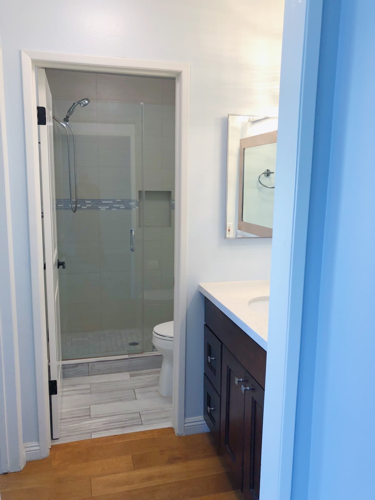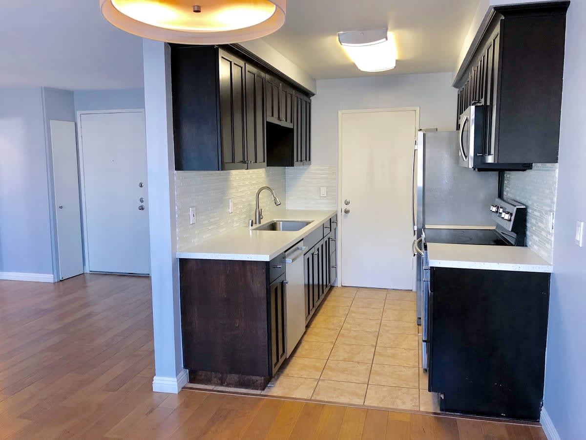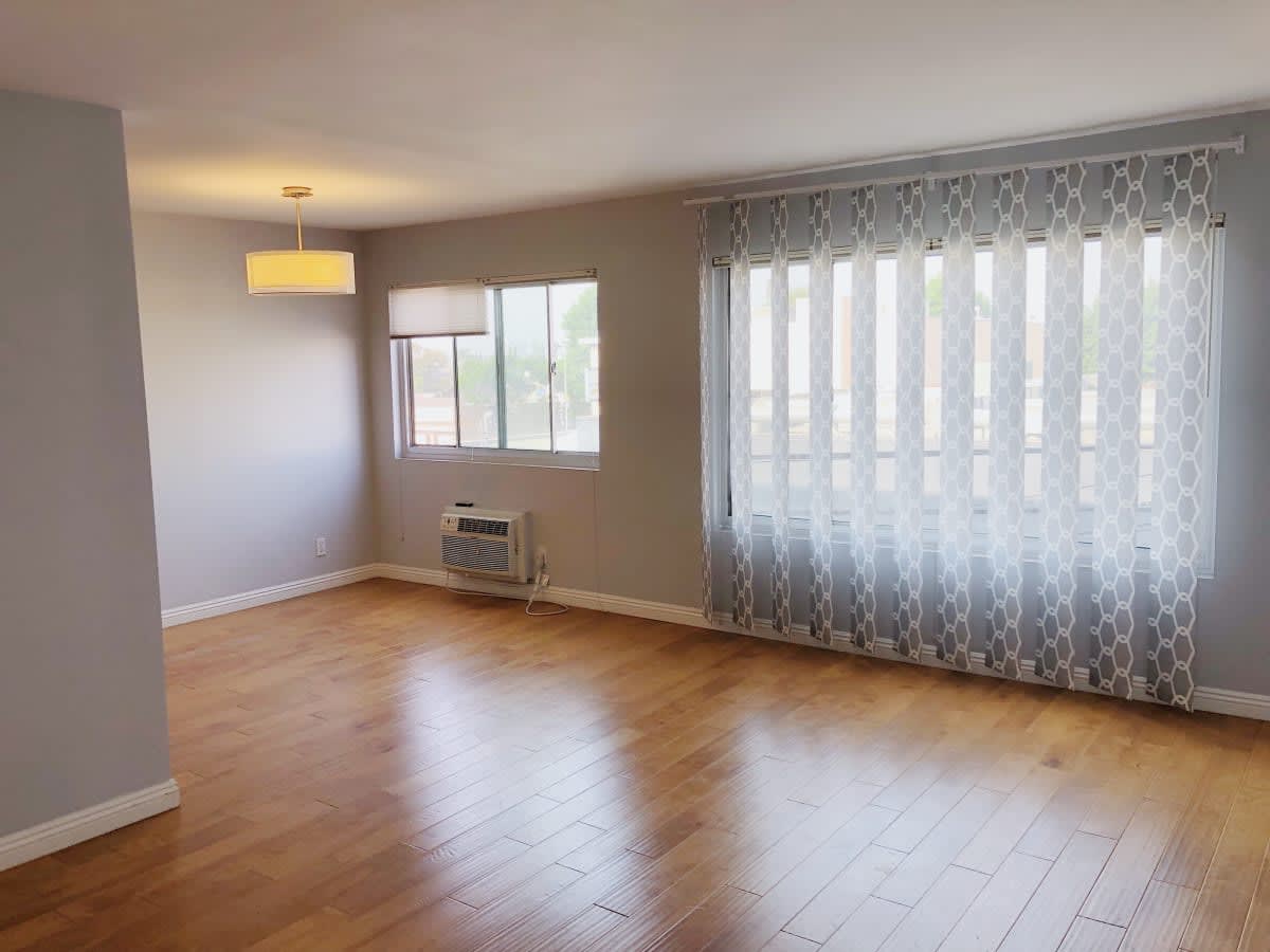 This 1 bed/1 bath large remodeled condo is perfect with 622 square feet and bathed in light. Third floor corner unit west facing with views of the Hollywood Hills and City. Wood floors throughout. Updated kitchen with stainless steel fridge/microwave/dishwasher/range and tiled back splash. The shower is enclosed in glass with stone tile and bench. The bedroom features two closets. A walk-in closet and large closet. One parking space included. This condo building also includes a pool, gym & sauna. Near Melrose and La Brea, you are close to everything but away from it all on a quiet residential street. The AC is a wall unit and the laundry is community. Close to Hancock Park. Pet friendly 20 lbs or under.